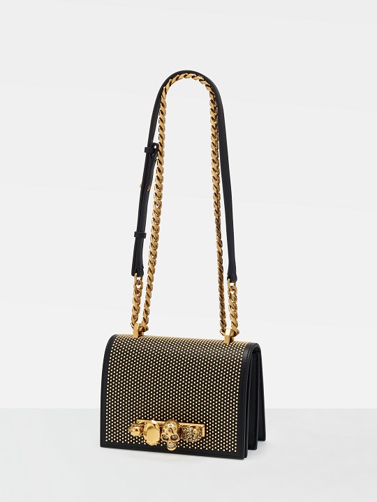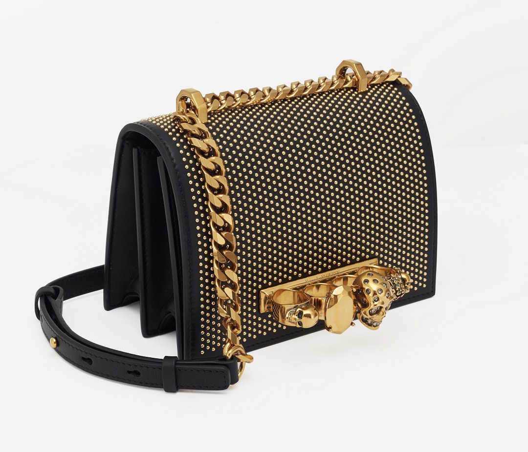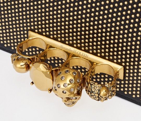 The Jewelled Satchel series debuted in early fall 2018. Creative director Sarah Burton drew inspiration from the brand's iconic Knuckle clutch and transplanted the "four-finger ring" element onto the cover of the Jewelled Satchel handbag.
