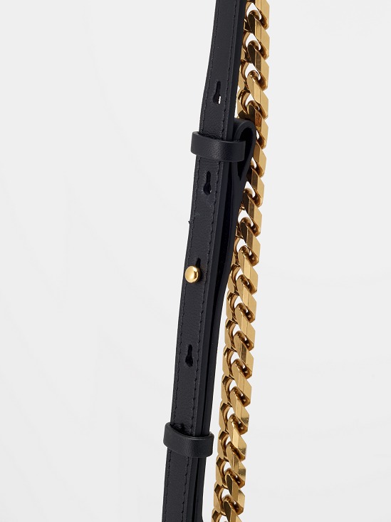 Apart from the cool ring design, the silhouette of this bag is simple and neat, and it is not difficult to control. It is matched with a thick chain and leather splicing shoulder strap , which can be folded into a double chain and can be carried on one shoulder, crossbody or hand.