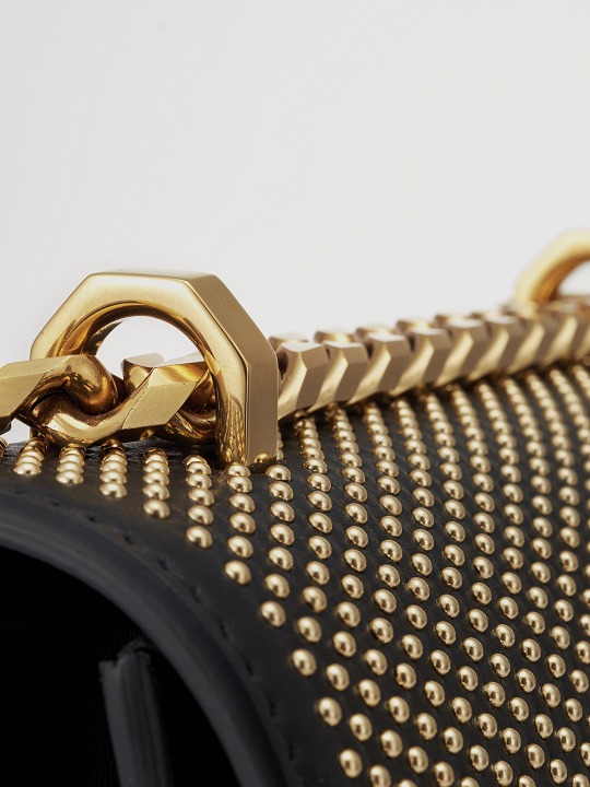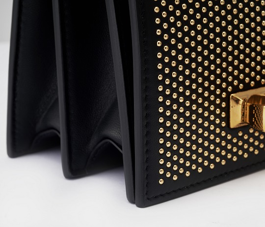 The handbag is covered with round metal studs , which brings out the rock-punk style to the extreme.
