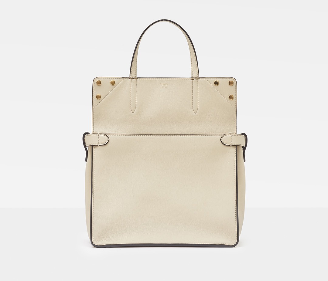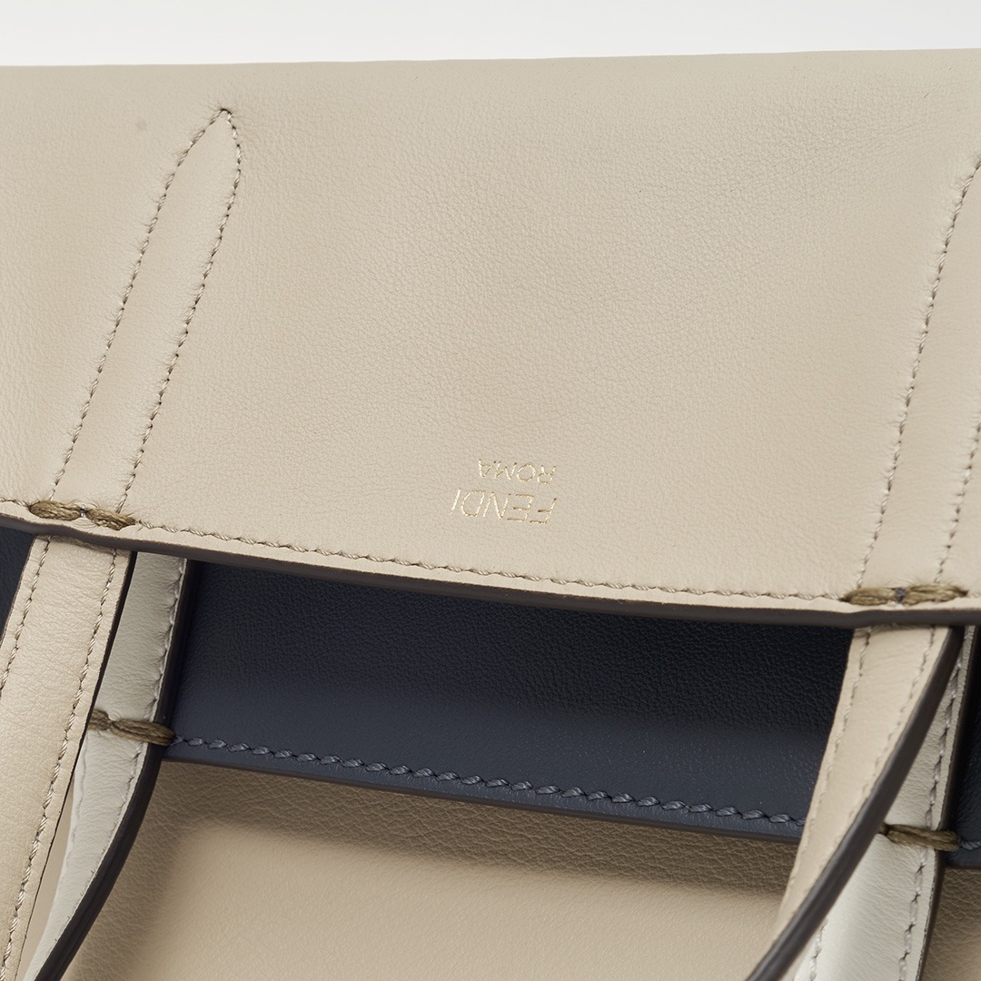 The FENDI ROMA logo is discreetly hot-stamped on the inside of the bag flap and is only faintly visible when it is turned inside out.