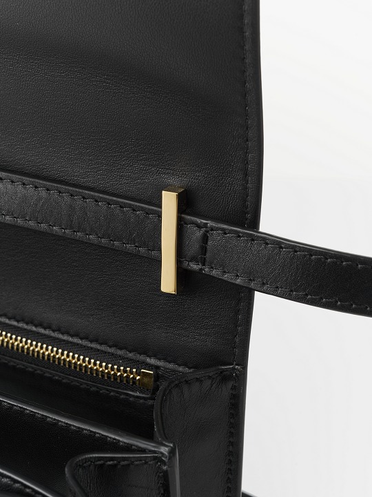 The bag measures 21×16×6cm, which is relatively thin and compact. It is equipped with a detachable and adjustable leather shoulder strap, which can be used as a clutch bag after removal.