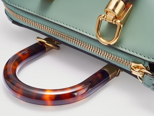 The more basic and simple the item is, the more it needs to use highlights in the details to get rid of the passerby feeling. This bag is very sincere in the detail design - the "U"-shaped double handles are made of tortoiseshell-effect plexiglass , and the mottled dark brown translucent texture gives people a deep and bookish feeling.