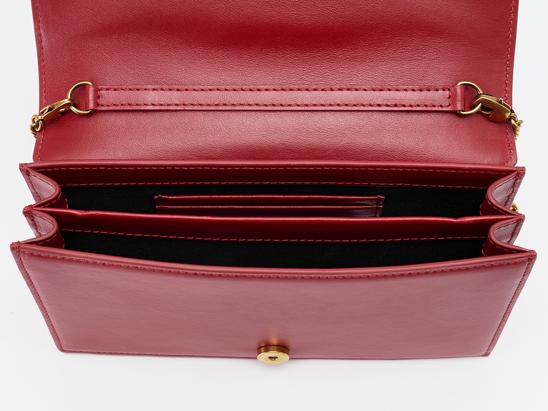 Although it is light and compact, this bag is thoughtfully equipped with double compartments and inner pockets to hold a mobile phone, coin purse, lip gloss and credit cards.