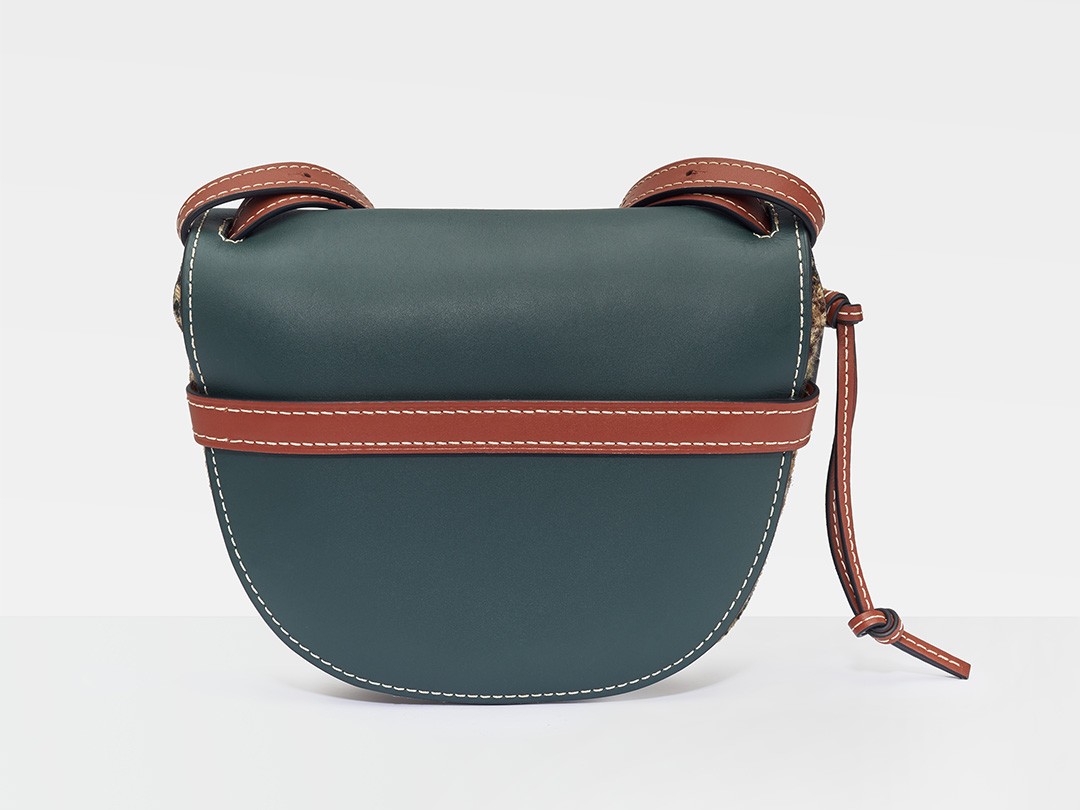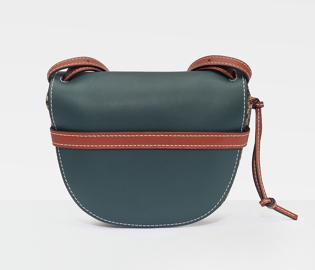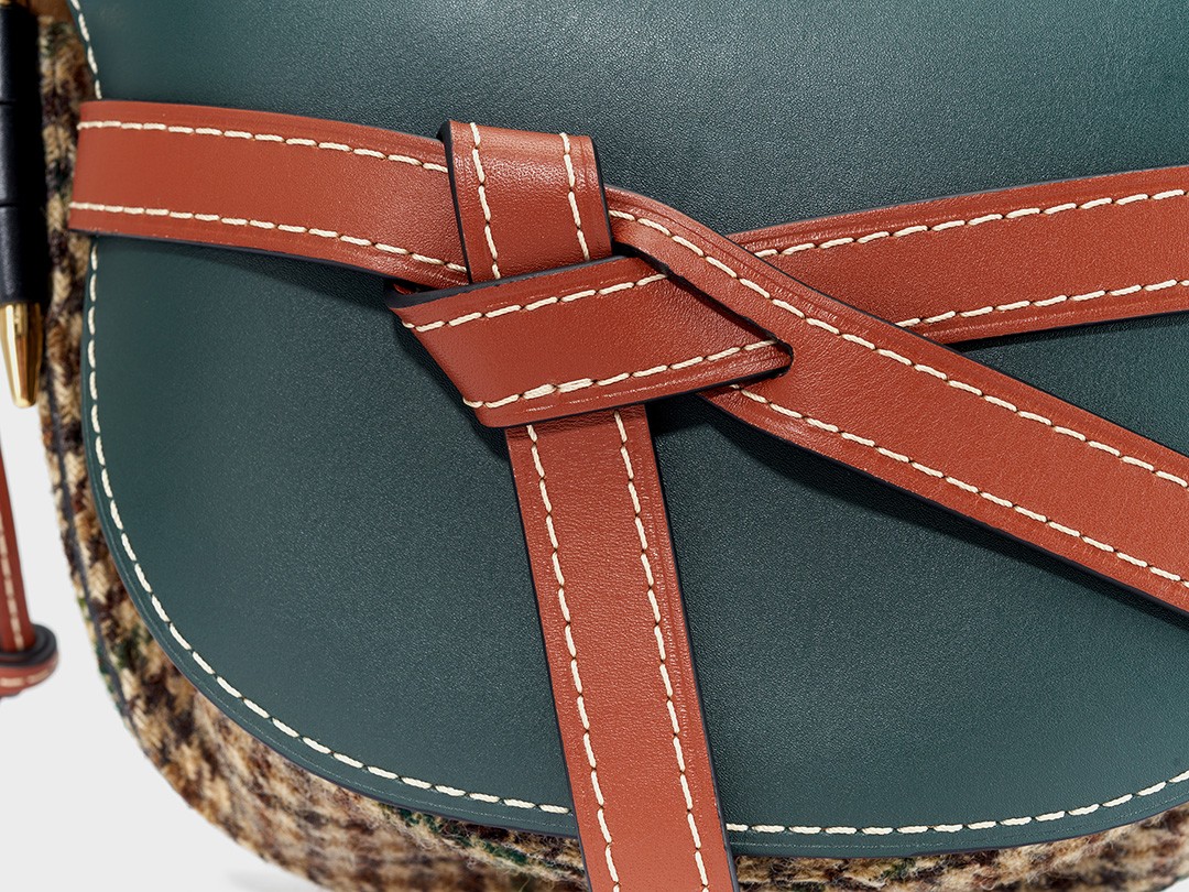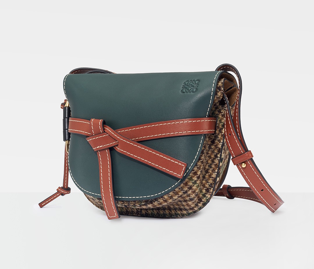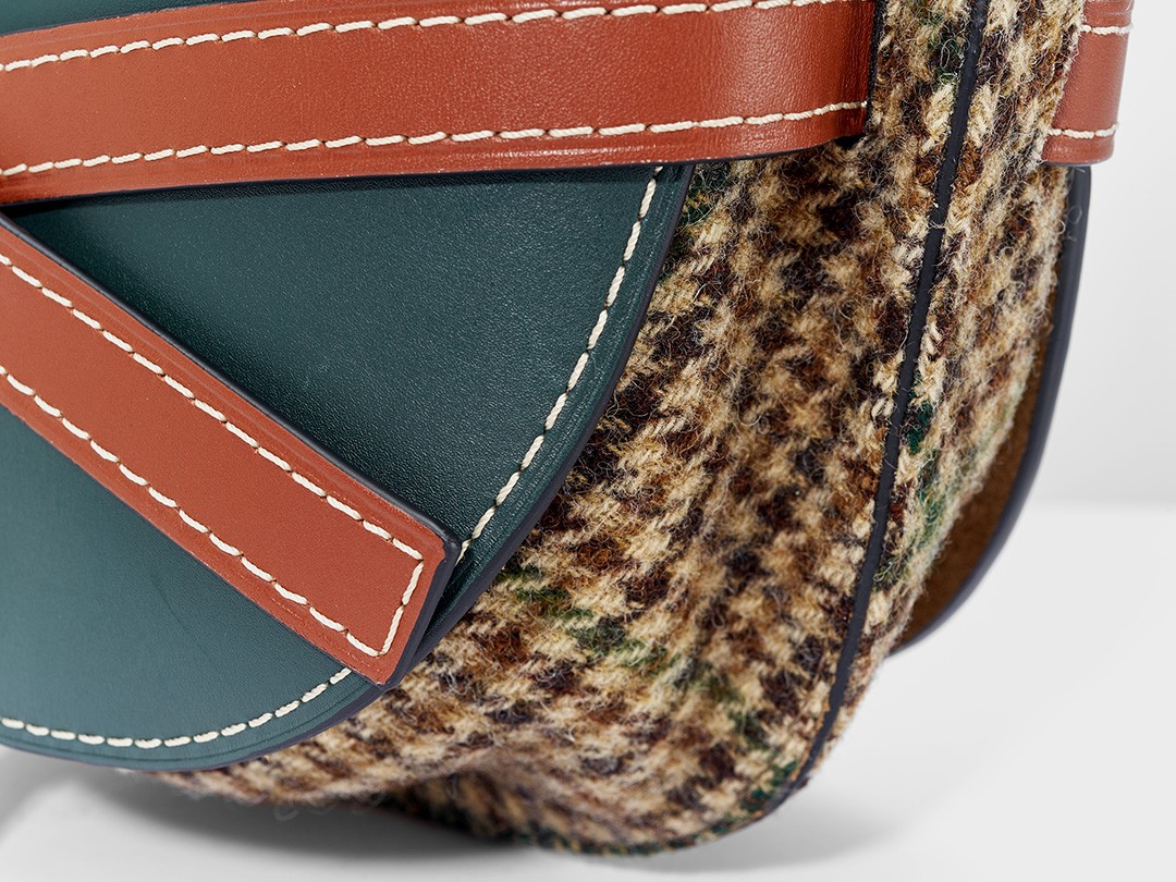 This Gate Bag made of dark green calfskin and plaid wool is from Loewe's 2018 autumn and winter collection, full of classical academic style . The exquisite three-dimensional saddle shape is decorated with a bow buckle, and contrasting stitching and side metal latches add details. Creative director Jonathan Anderson took suspended architecture and classic literary works as inspiration, and modernized the plaid fabric full of classical temperament, making the bag have both an architectural three-dimensional silhouette and a retro academic style.