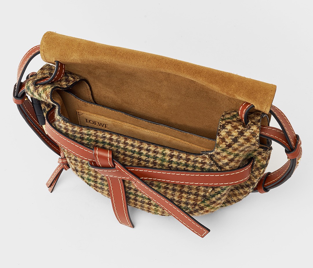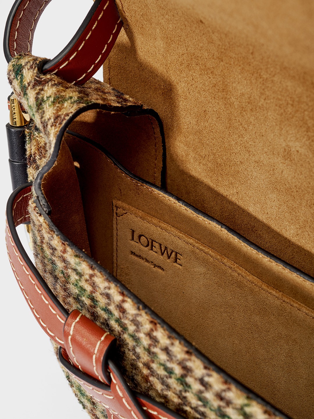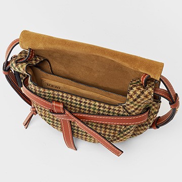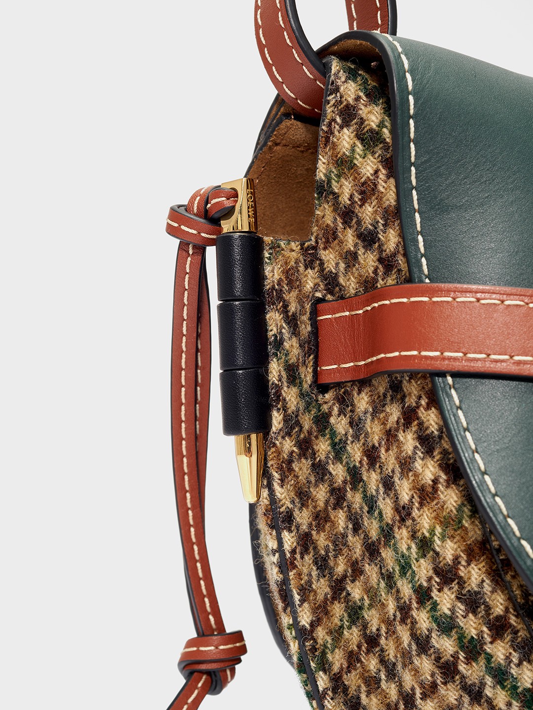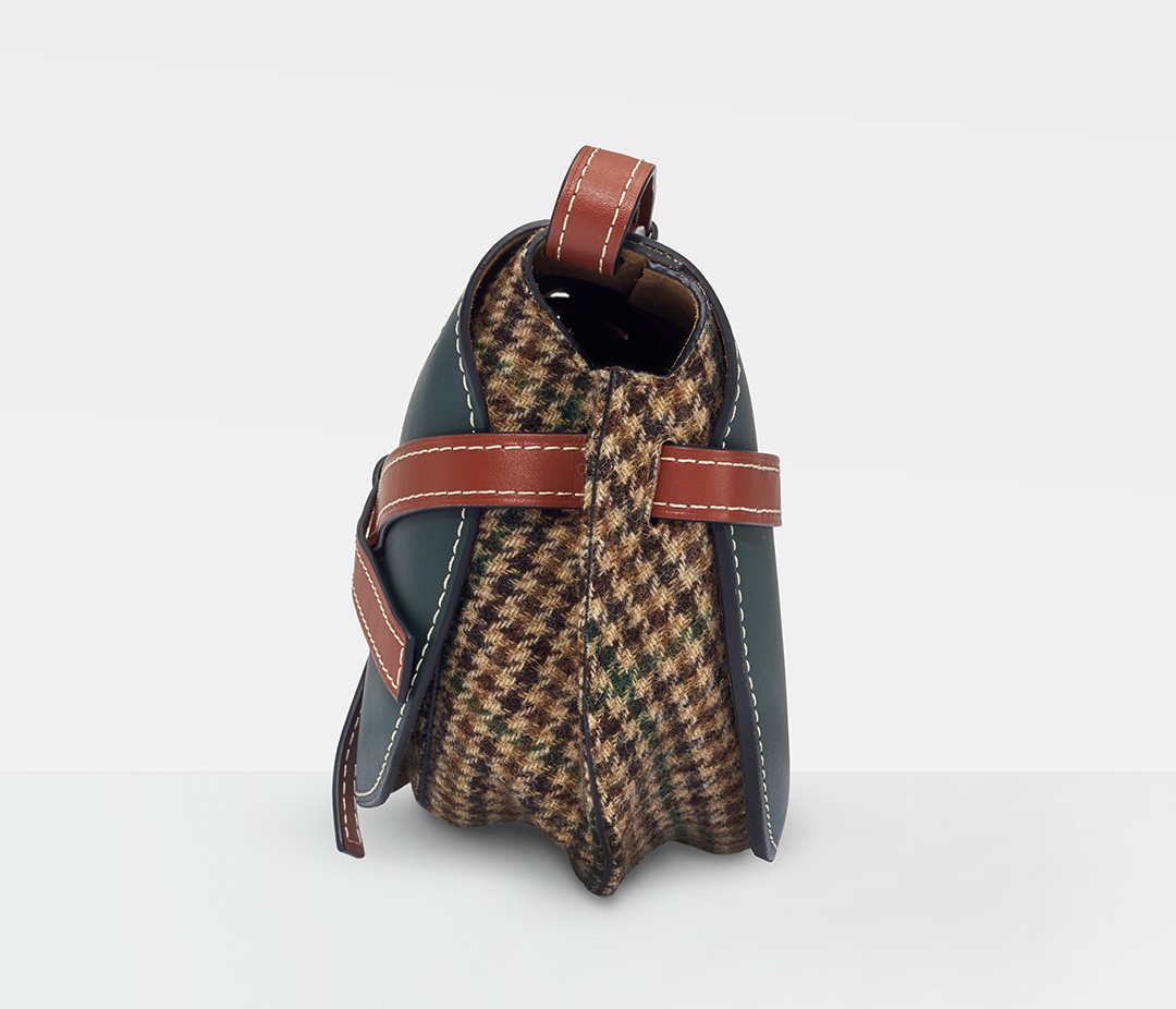 This Gate Bag made of dark green calfskin and plaid wool is from Loewe's 2018 autumn and winter collection, full of classical academic style . The exquisite three-dimensional saddle shape is decorated with a bow buckle, and contrasting stitching and side metal latches add details. Creative director Jonathan Anderson took suspended architecture and classic literary works as inspiration, and modernized the plaid fabric full of classical temperament, making the bag have both an architectural three-dimensional silhouette and a retro academic style.