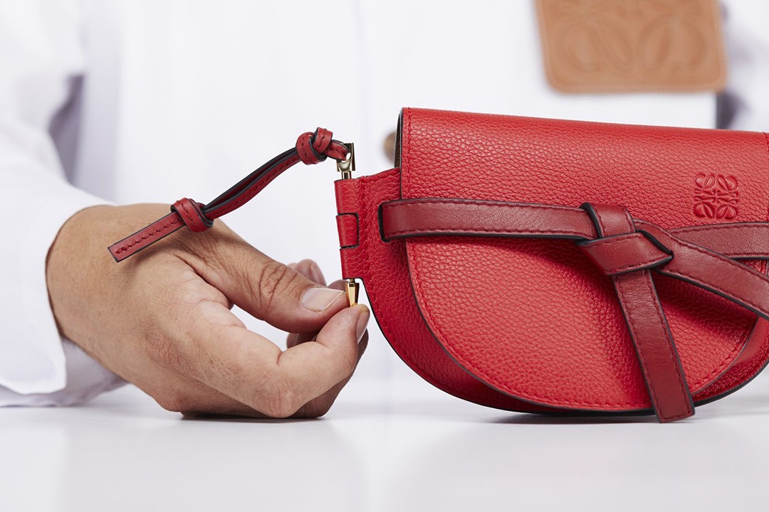 The upper right corner of the flap is engraved with Loewe's iconic Anagram pattern. The logo was designed by Spanish artist Vicente Vela in 1970. It consists of four mirrored L letters, symbolizing the brand's long history. The contrasting stitching on the leather lock edge is also one of the design highlights of the Gate Bag, making the lines of the bag more lively and playful.
