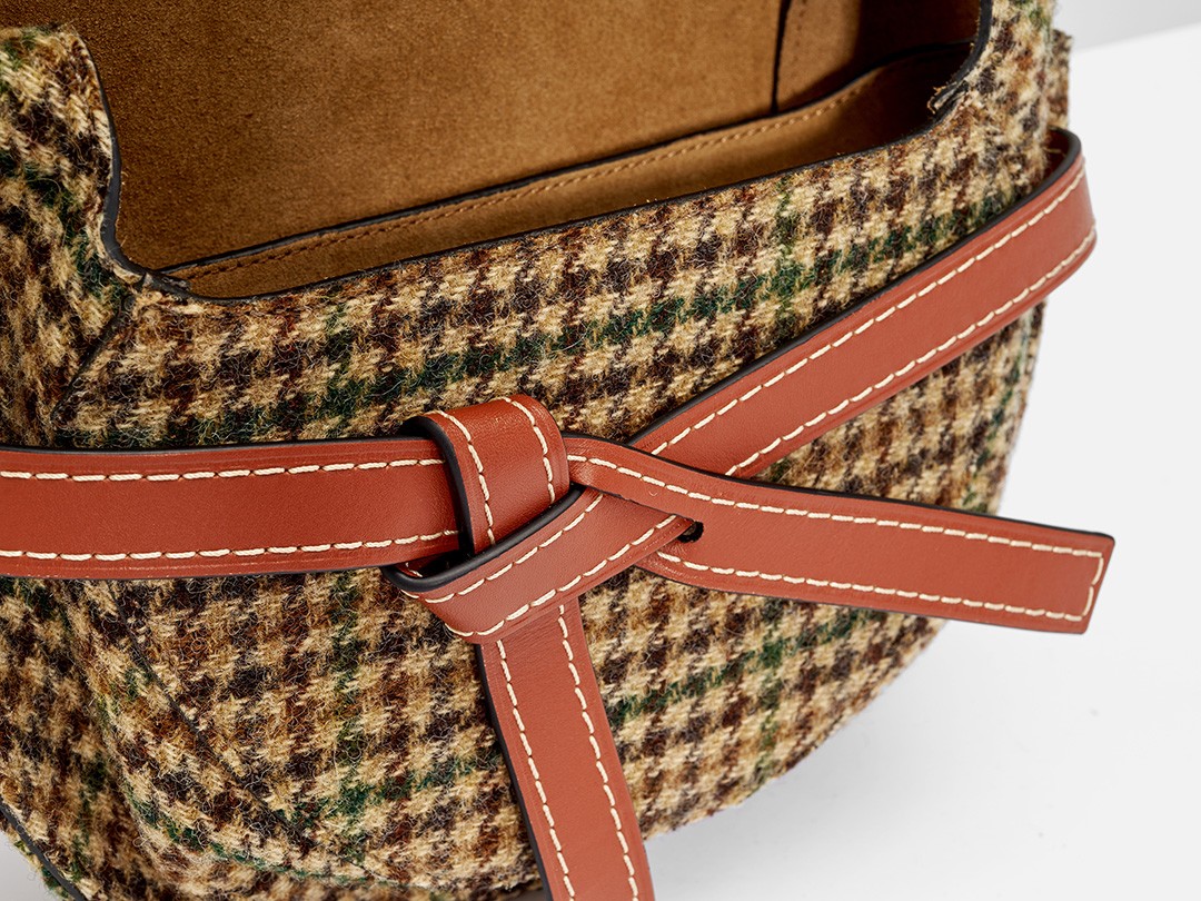 The bag is made of tan checked wool , which adds a touch of warmth to autumn and winter. It is soft and stretchable. The houndstooth pattern originated in Scotland and is also known as the "noble check" because it is favored by royal nobles such as the Duchess of Windsor.