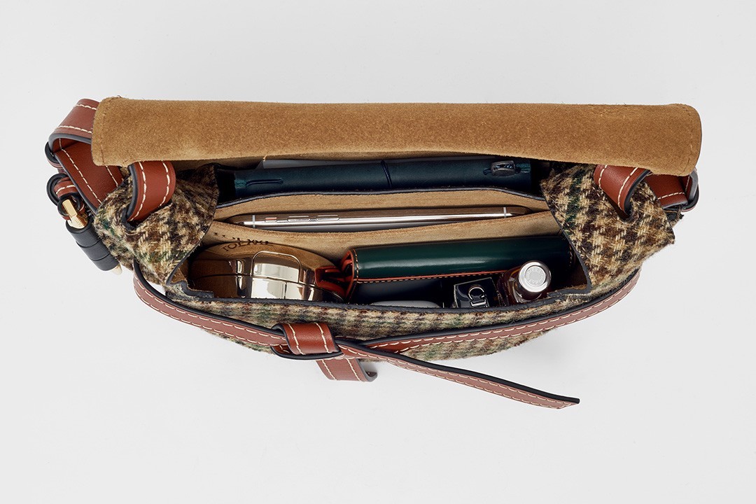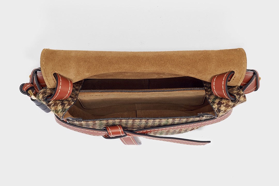 Even when it’s open, the combination of the brown leather buckle and the checked wool tweed is very pleasing to the eye.