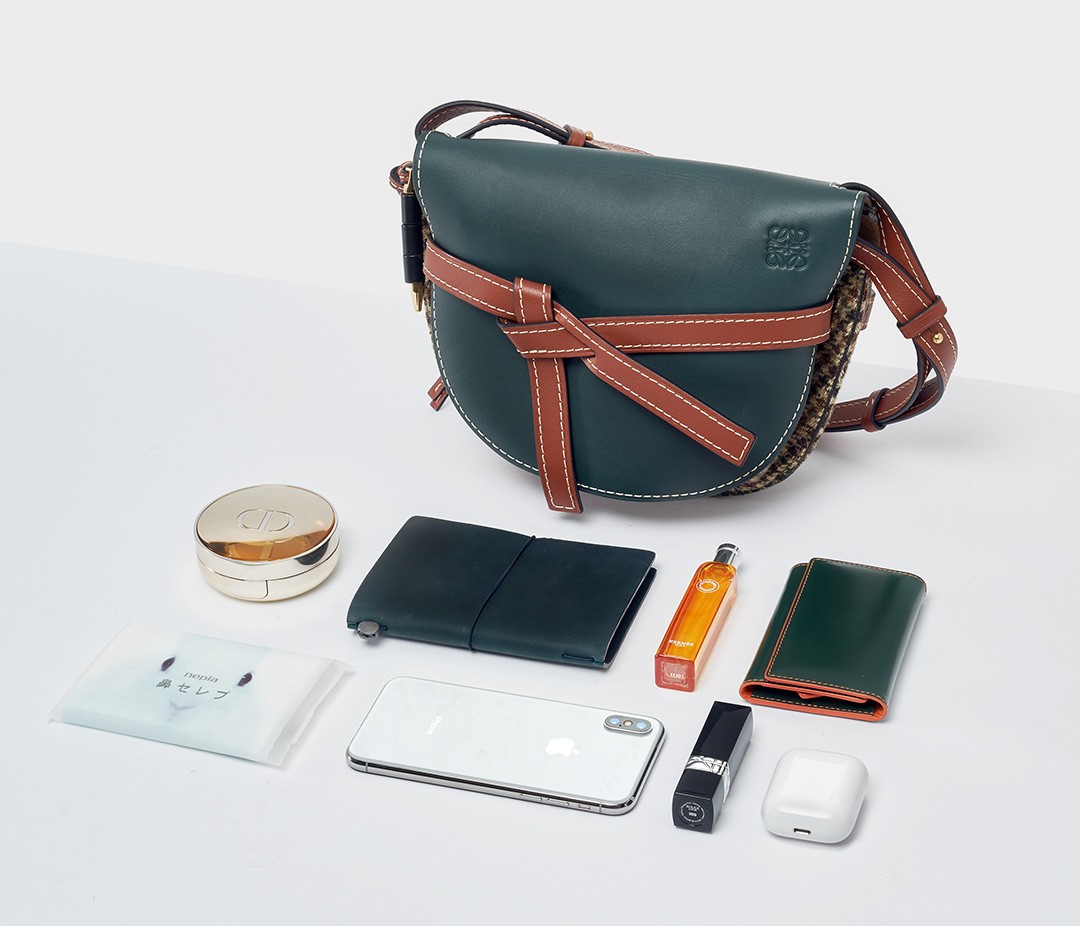 The bag is lined with suede calfskin , which is soft and not prone to scratches. The color matches the tan plaid and the edges are hand-painted in black. The interior has two large compartments and a small clip pocket, with the words LOEWE Made in Spain printed on the front. Although it looks light and compact, the actual space of this bag is very sufficient. It can hold a notebook, a card holder, an iPhone, a pair of Airpods, a pack of tissues, a box of powder, a bottle of perfume and a lipstick, and there is still room. The clip pocket on the back can also store small items such as hair ties and cards. Since its birth in early 2018, the Gate Bag has quickly become one of Loewe's most popular bags. Whether paired with a flowing skirt or a capable trousers, its simple silhouette and neutral temperament can be perfectly controlled. Coupled with the exquisite craftsmanship and high-quality leather of the bag itself, I am afraid that the speed of making bags in the Spanish workshop cannot keep up with the speed of customers buying bags.