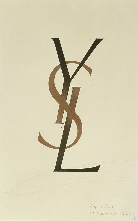 The two invited French graphic designer Cassandre to design the brand logo , which used a vertical Monogram pattern composed of overlapping "Y", "S" and "L". In January 1962, YSL held its first haute couture fashion show , presenting women's fashions such as the Pea Coat and Trench Coat inspired by men's clothing, thus establishing the design style of YSL.