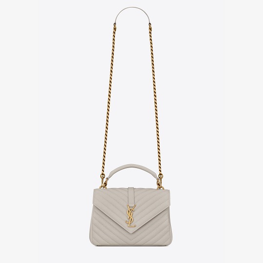 The classic handbags designed by Hedi Slimane include the Sac de Jour series and the Monogram series. The Sac de Jour series was launched in 2013 and is called the "Accordion Bag" because the leather folds on both sides resemble the bellows of an accordion. The Monogram series includes College, Kate and other bags, with the metal YSL Logo as the iconic element.