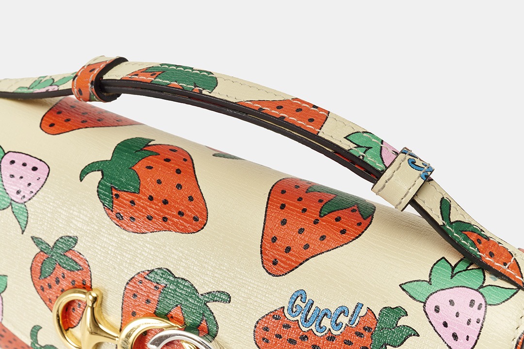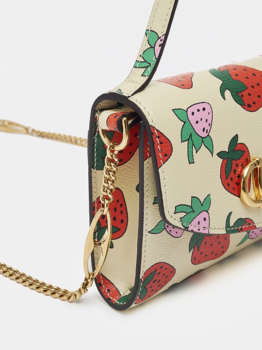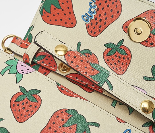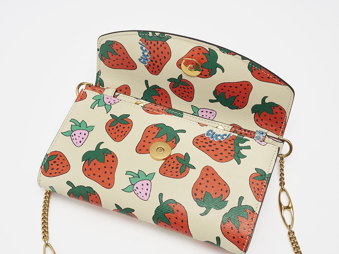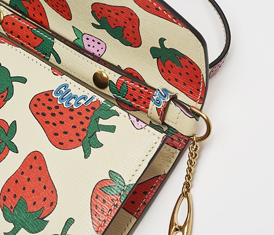 As the most beautiful fruit in the world, strawberries have always been favored by the fashion circle. The new strawberry pattern of Gucci's 2019 spring and summer series is presented in a pop style , full of 70s retro feeling. The strawberry with teeth marks "bitten" by the GUCCI logo has a bit more playfulness of a funny girl. Paired with ivory leather and natural texture, it exudes a nostalgic texture.