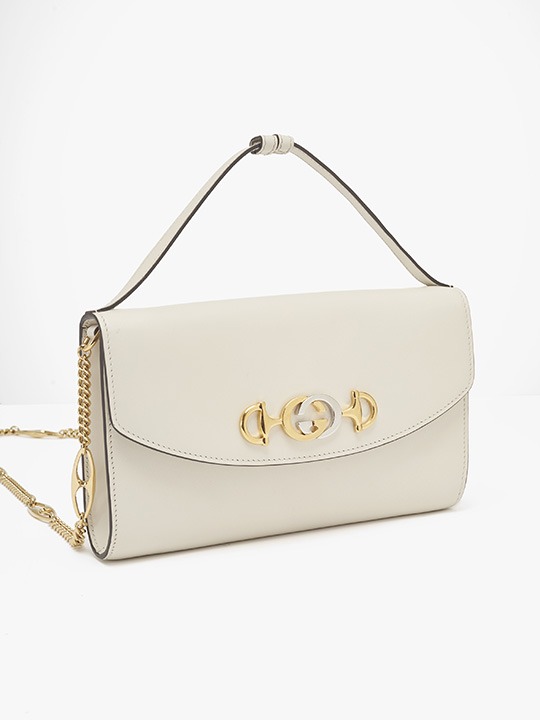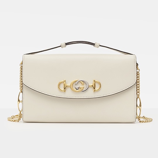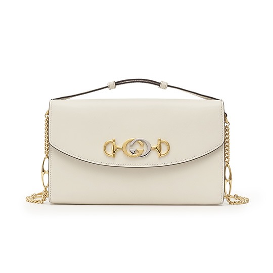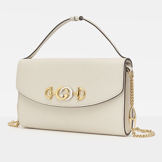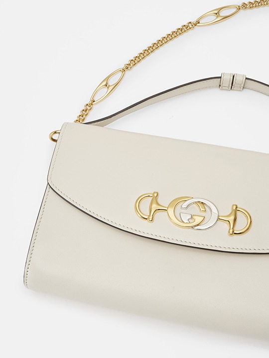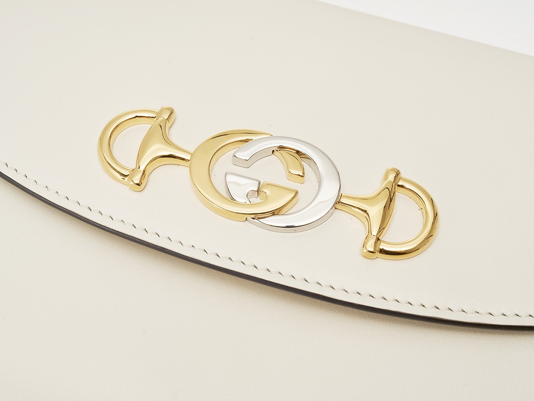 The interlocking GG horsebit is an iconic element of the Zumi series of handbags. Drawing inspiration from the brand's historical archives, it combines the Horsebit horsebit, which was born in 1953 , with the interlocking GG print launched in 1961 to form this unique buckle decoration.