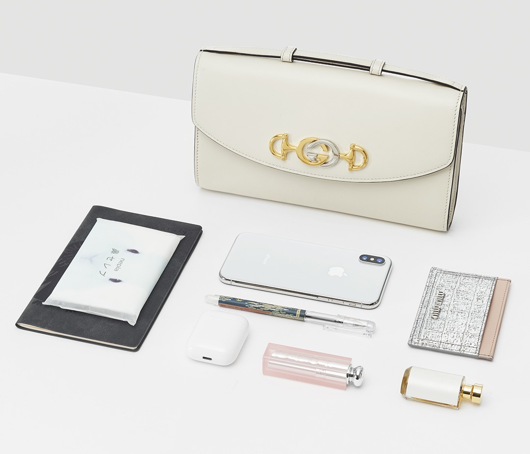 Compared to its mini size, the storage space of this small handbag is even more surprising. It can not only hold an iPhone X, a card holder, lipstick, perfume and headphones, but also a thin notebook and can be easily opened and closed without affecting the appearance of the bag.