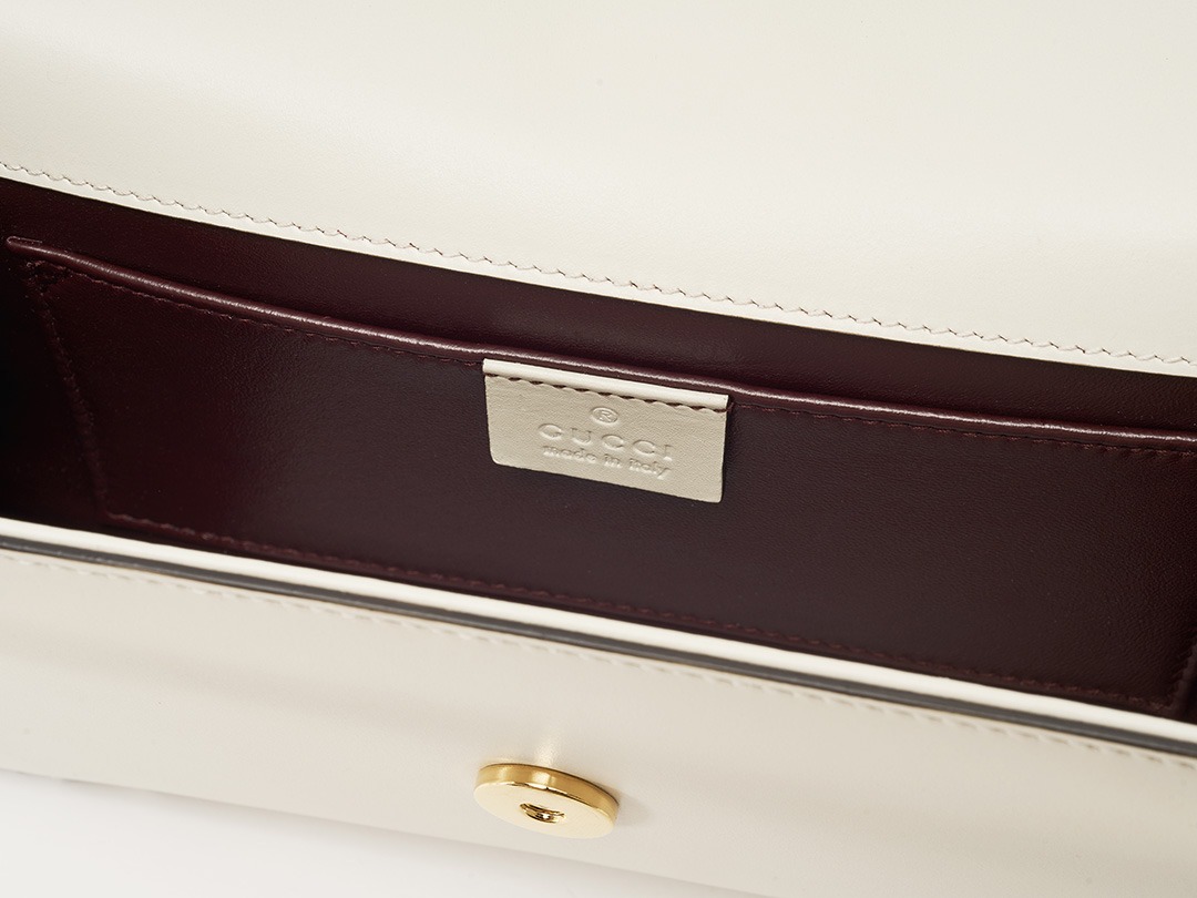 The Double G horsebit on the white leather is also more prominent, and the mix of silver and light gold adds interesting details to the already very delicate structure.