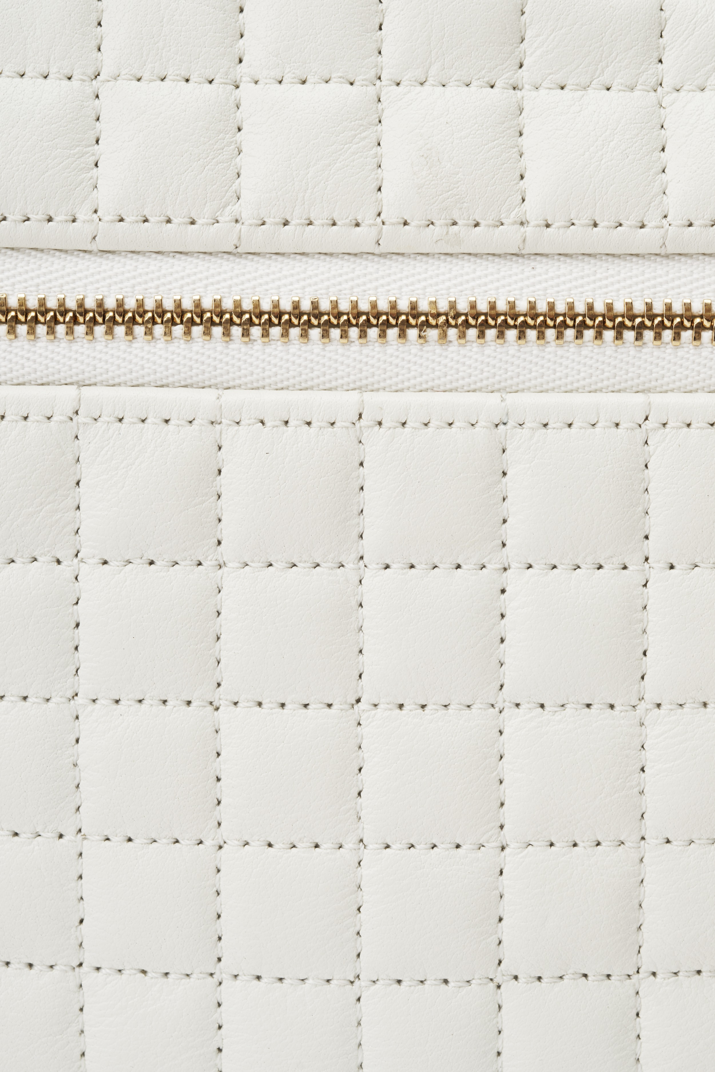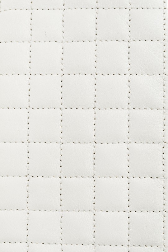 Made of pure white calfskin leather , the bag features a square tablet pattern on the front and is crafted with 1.5cm fine square quilting, which gives it a full and lustrous visual effect and is also a signature element of the C series handbags.