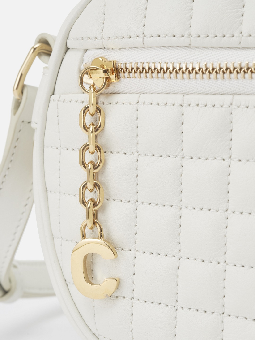 The exquisite and smooth C letter charm is connected to the zipper buckle of the front pocket through a slim chain, replacing the zipper loop and playing the role of controlling the opening and closing of the pocket.