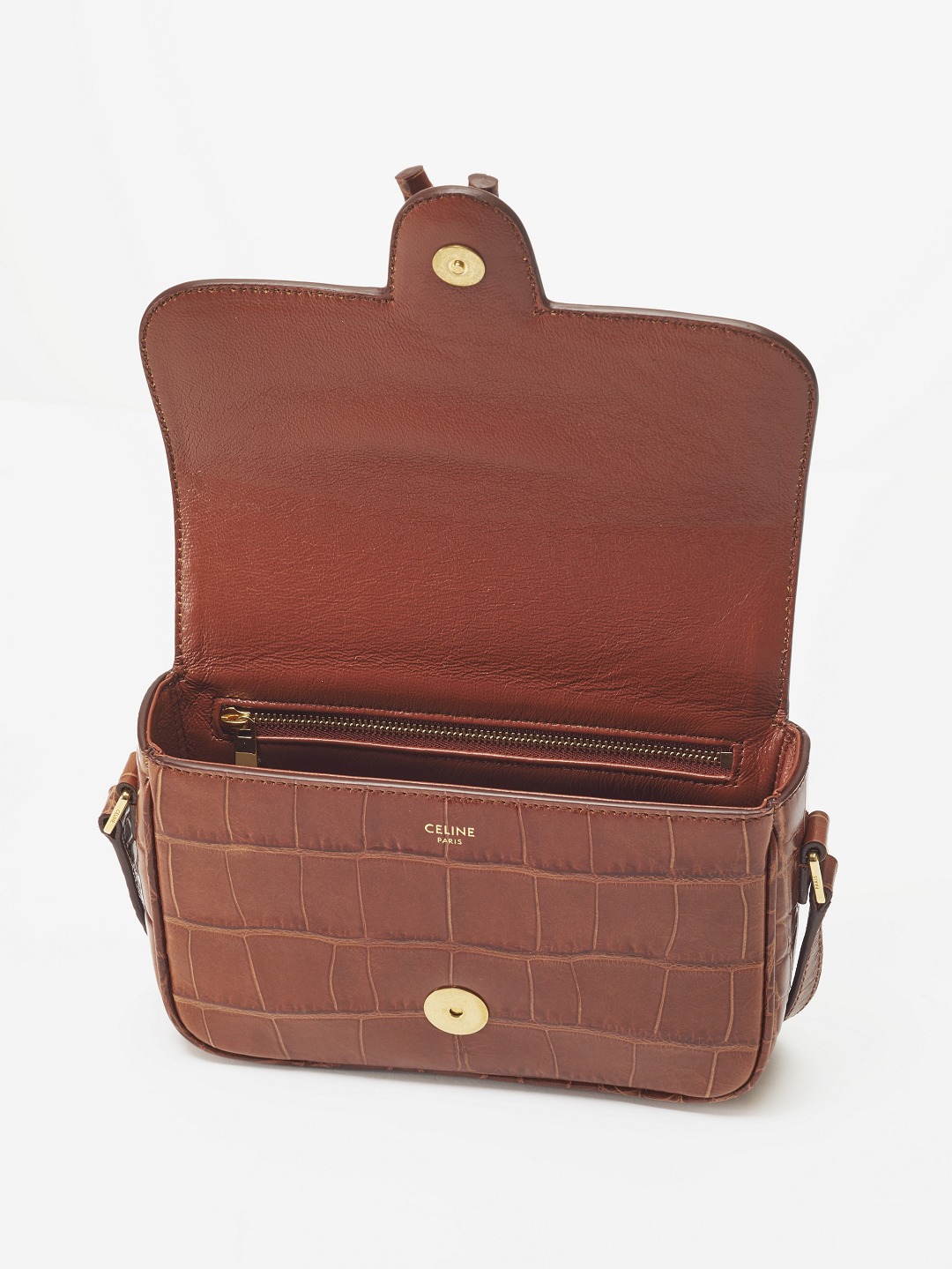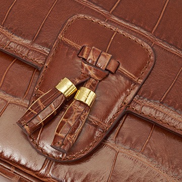 The tassels of this bag are cut and rolled from crocodile-embossed calfskin, fixed at the bottom with stitching and black oil edges, and the golden ring engraved with the CELINE PARIS logo is the finishing touch of the entire bag.