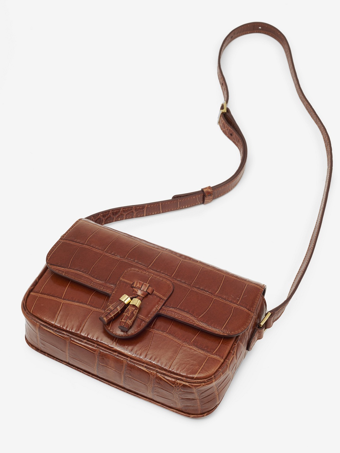 CELINE Crocodile Embossed Calfskin Tassel Handbag