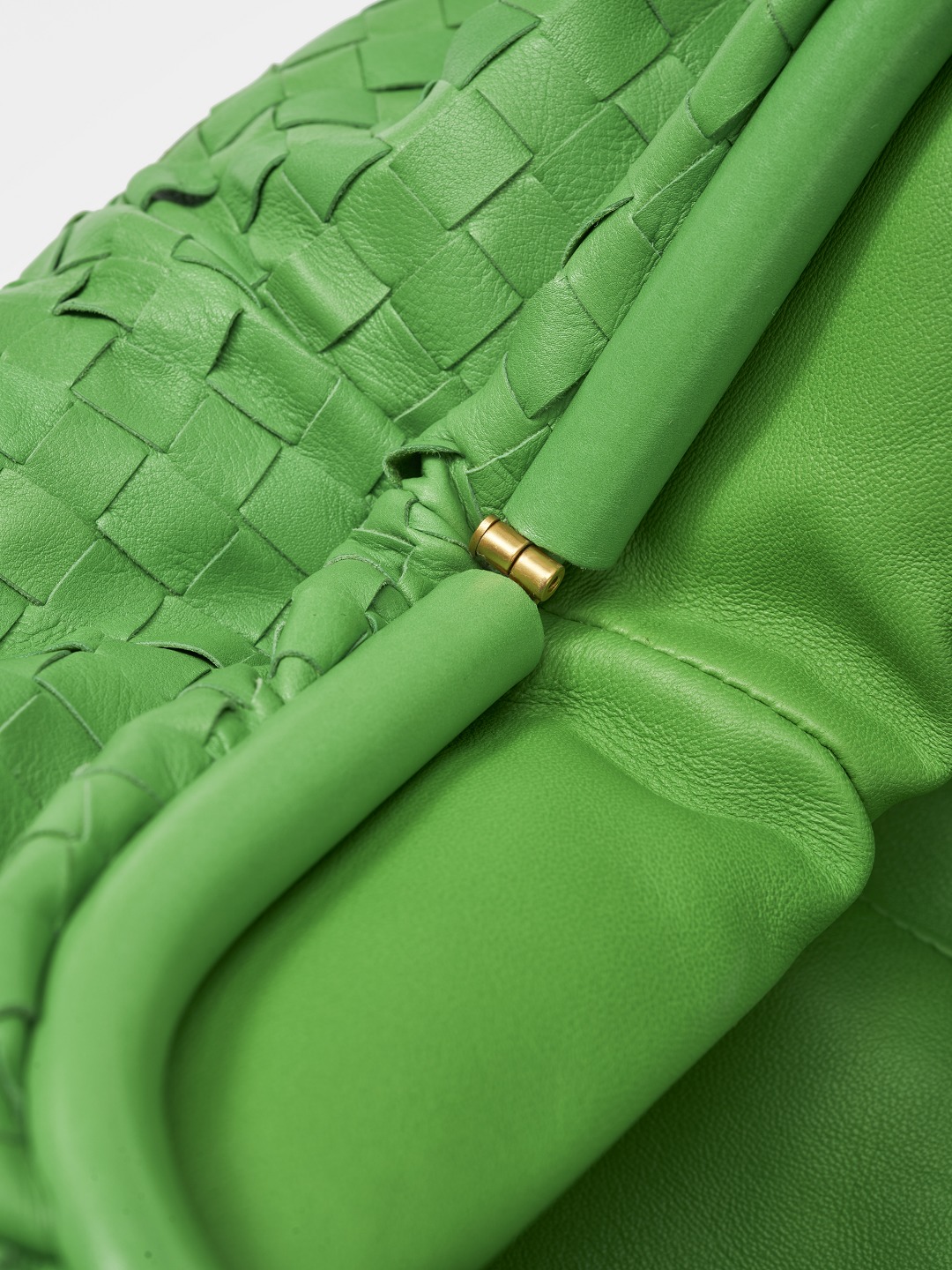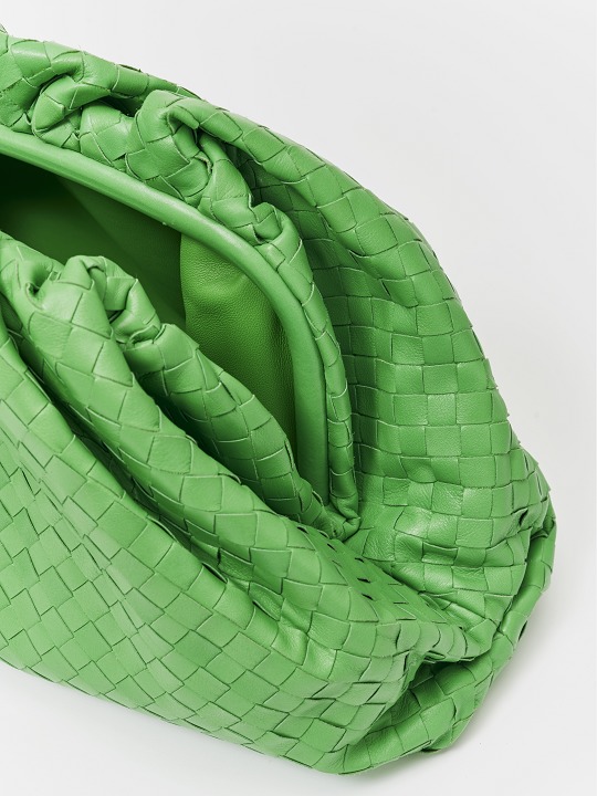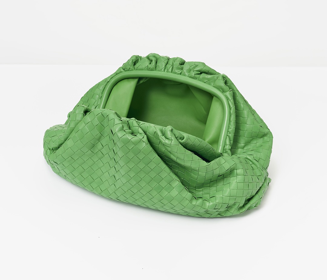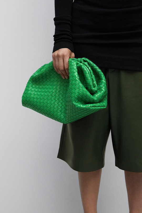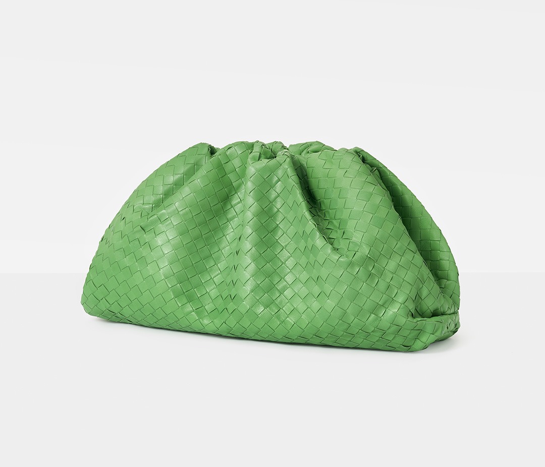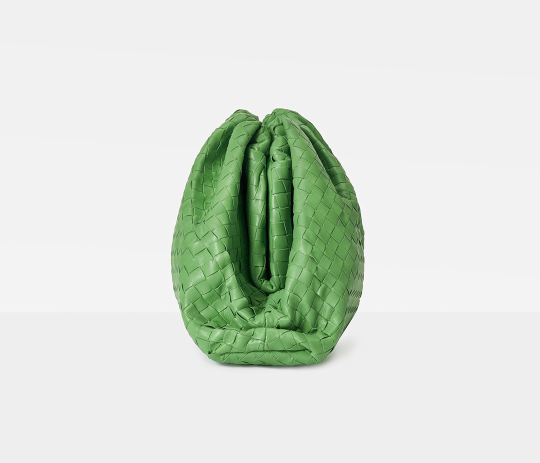 The Pouch clutch is made from a single piece of Intrecciato woven leather, with no seams visible from the outside, and the requirements for both leather and craftsmanship are very stringent.