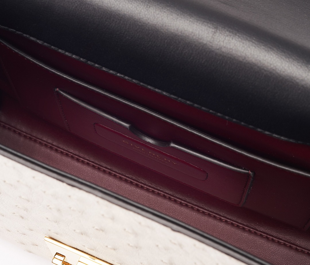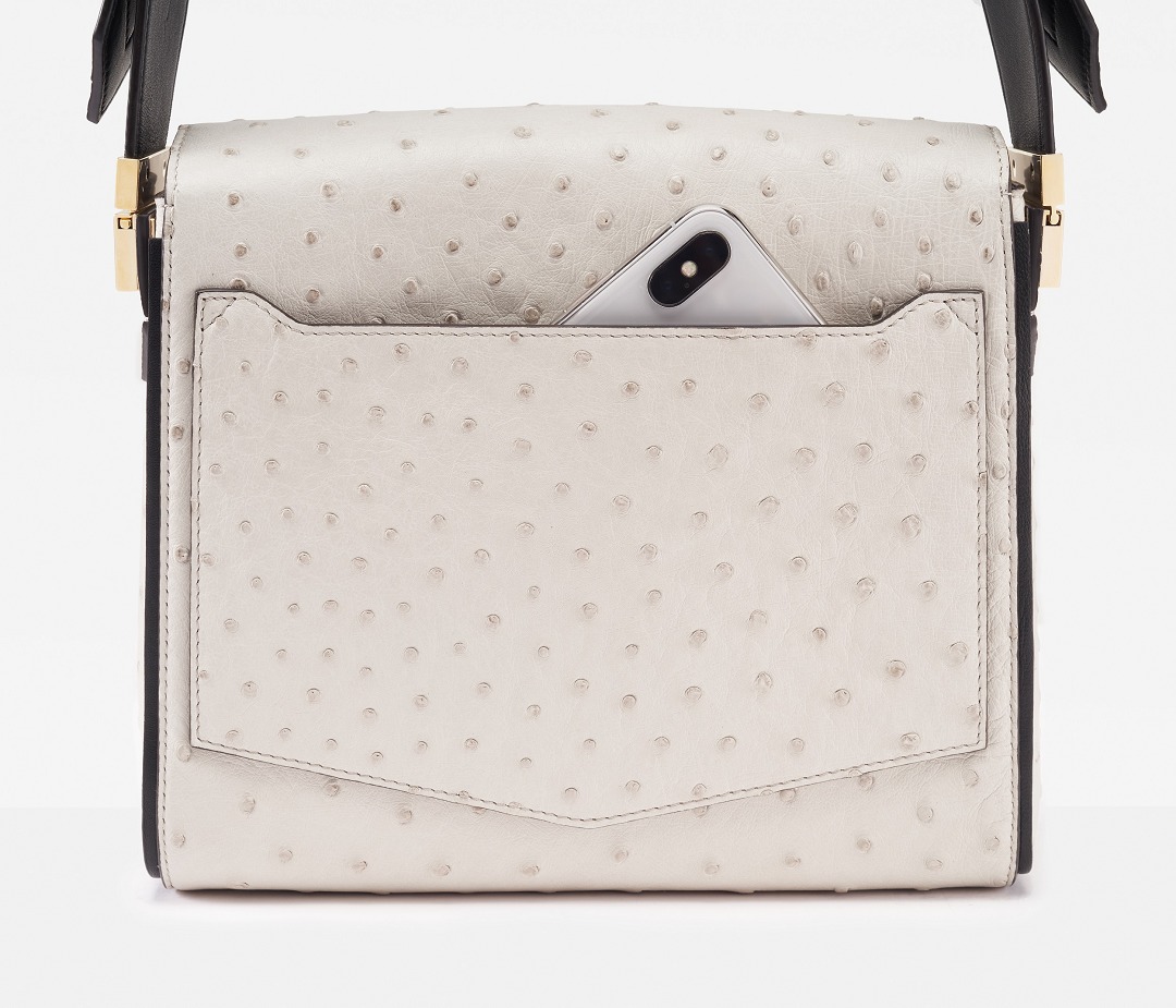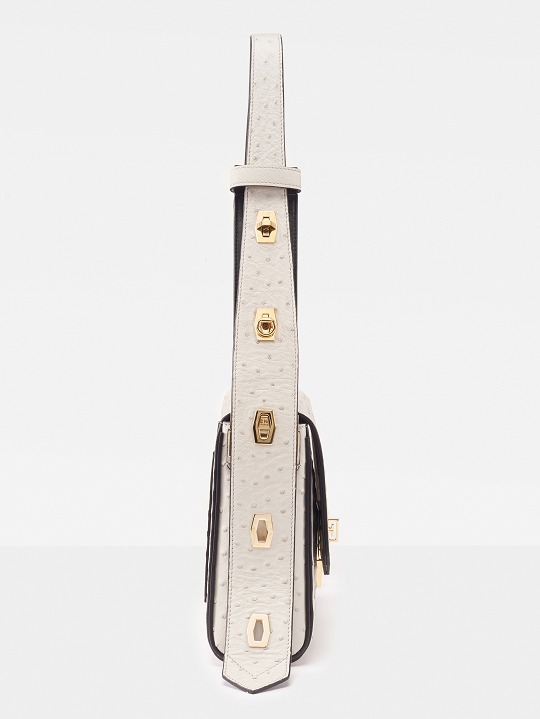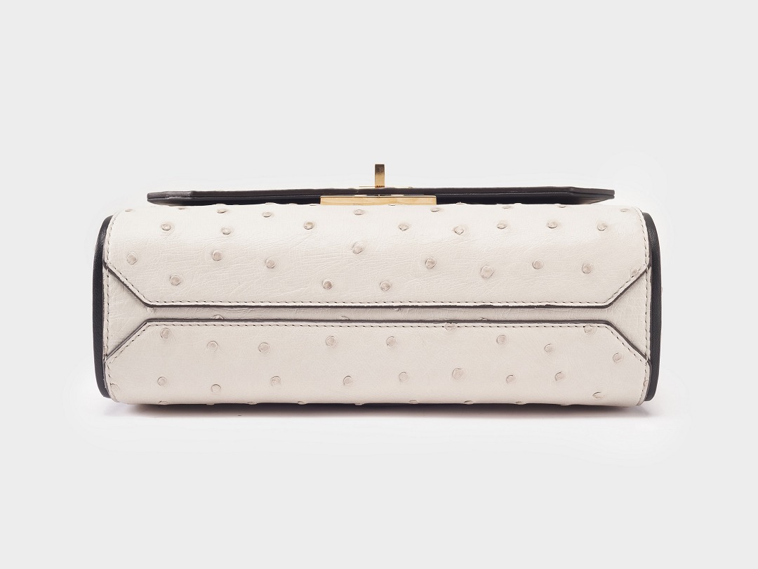 The entire exterior of the bag is made of white ostrich leather, and the seams are decorated with bright black edge oil . The strong handmade feel adds a rare sense of elegance.