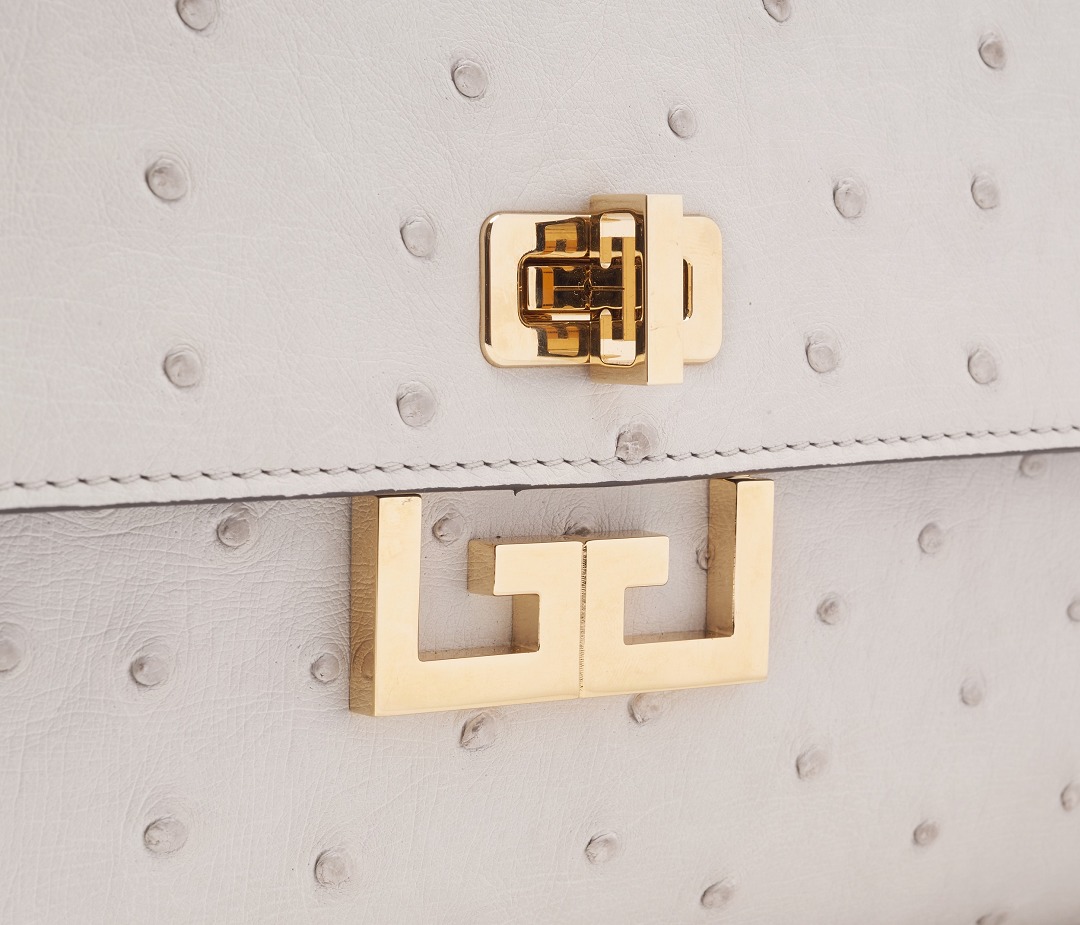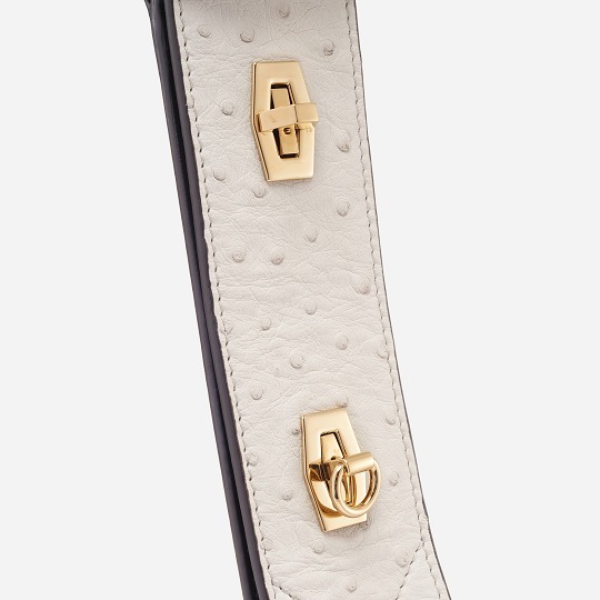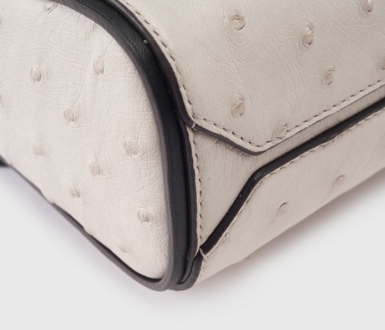 The soft and light ostrich leather is known for its unique small round grain texture, unique convex pores with good air permeability and comfortable touch , and the natural matte ivory white leather makes the bag exude a gentle and elegant temperament. Moreover, the leather is rich in oil, and with the increase of use time, it reveals a unique glossy luster.