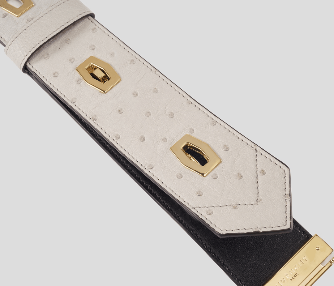 · Ostrich leather & patchwork details ·