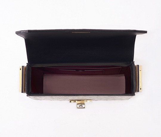 To open the bag, simply turn the double G buckle on the top to be parallel to the keyhole, and the lid can be easily opened; when the bag is closed, the lower part of the double G logo is faintly visible, like a pair of lovers sitting facing each other.