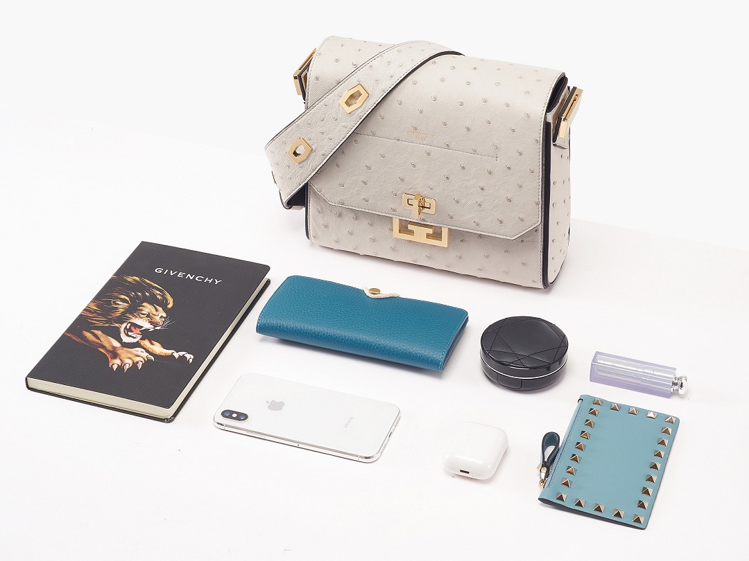 The capacity of the medium-sized Eden is not to be underestimated. We put a notebook, a box of powder, an iPhone X, a pair of Airpods, a lipstick, a coin purse and a glasses bag in it and it was almost full. There is still enough space for small light items. However, because it has many metal parts, the weight of this bag is relatively large.