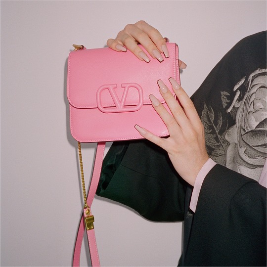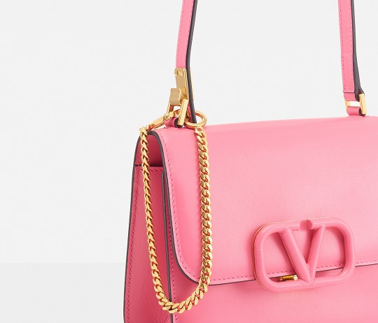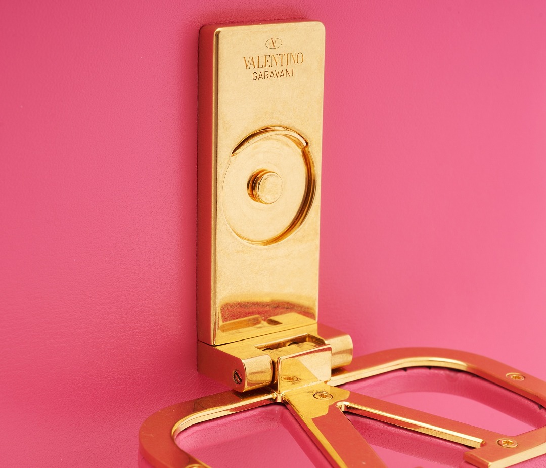 The bag's name, VSLING , is a combination of the letter V and "Sling", representing the two most iconic elements of the bag - the VLOGO buckle and the Sling brass chain . VLOGO was born in the early days of the Valentino brand in the 1960s . It uses a serif font V with a classic temperament . The left slash is slightly thicker than the right, and the top serif extends to form an elliptical outline. This logo is reflected in the brand's fashion and accessories design from the 1960s to the 1970s.