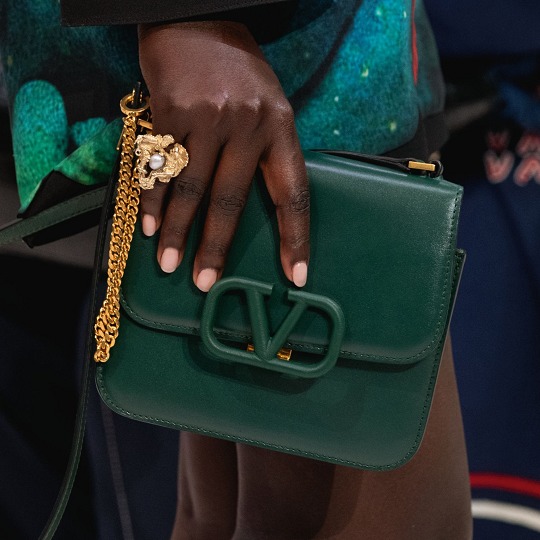 In the 2019 spring and summer season , VLOGO returns with a new look. Creative director Pierpaolo Piccioli redesigned the original serif font, transforming the slender ellipse outline into a thick rounded rectangle , and using it in a big way. Last season's VRING and VLOCK series handbags both used it as a signature decoration.