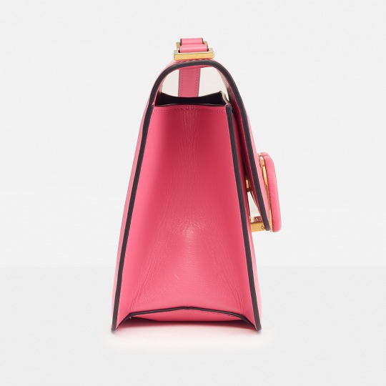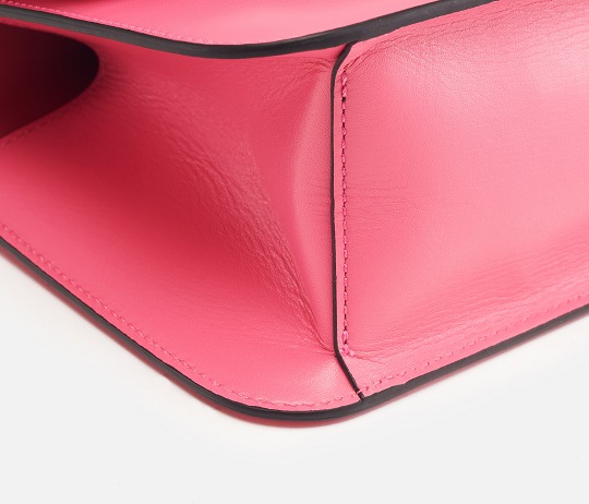 The bag is made of smooth and delicate calfskin , and the edges are outlined with black oil edges , which makes the nearly cubic Box bag shape more three-dimensional. The rounded lines make the bag look a bit playful, and it is even more girly in the macaron pink interpretation.