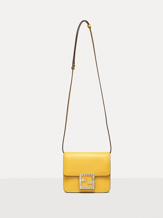 The FAB handbag uses the square FF Logo to make a metal buckle, on which 56 rectangular-cut Swarovski crystals are inlaid . It looks particularly dazzling on the yellow bag and has become the soul element of this bag.