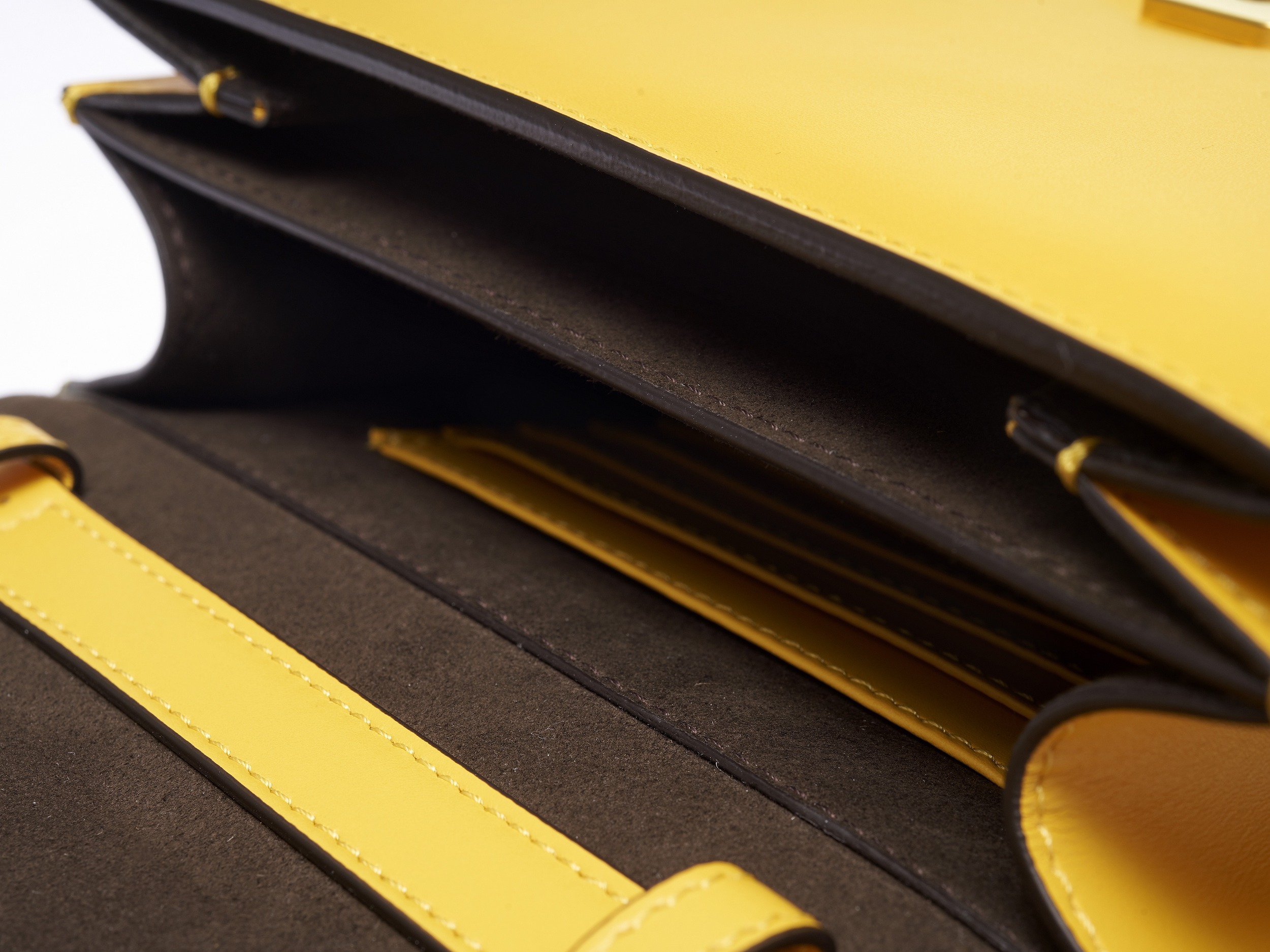 The bright yellow bag is the most attractive. The saturation is not too high but it is very outstanding. It is a relatively easy-to-control color. The bag gives people a feeling of bathing in the warm sunshine, and the mood will become brighter when carrying it.