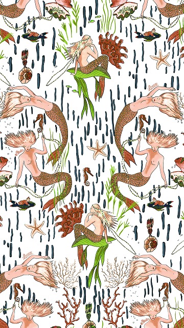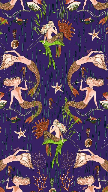This mermaid print also comes from Paula's kaleidoscopic archive. It features a fairy-tale mermaid as the protagonist, and is embellished with marine elements such as coral reefs, seaweed, and starfish to create a beautiful and romantic mood.