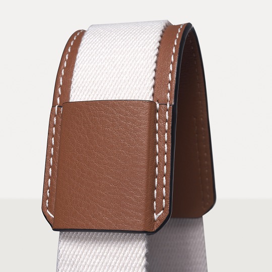 The wide off-white canvas shoulder strap can be adjusted in length through the metal buckle on the side, the shortest is 113 cm and the longest is 156 cm . In addition, the bag is designed to be relatively neutral, so it can be carried by petite girls or tall boys.