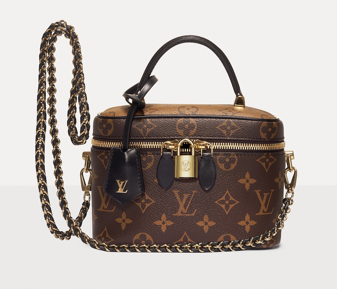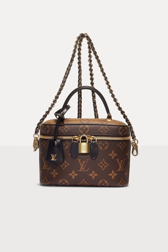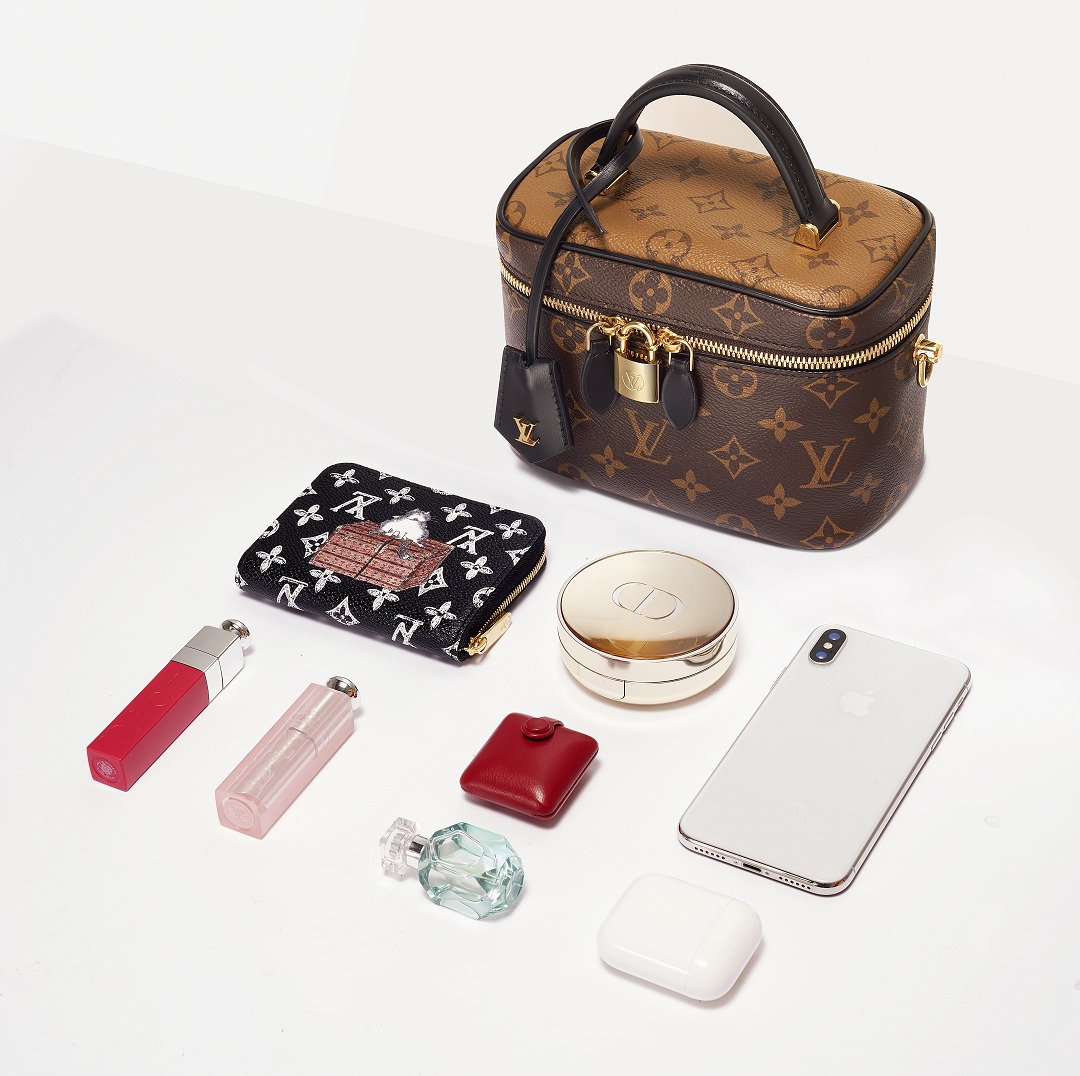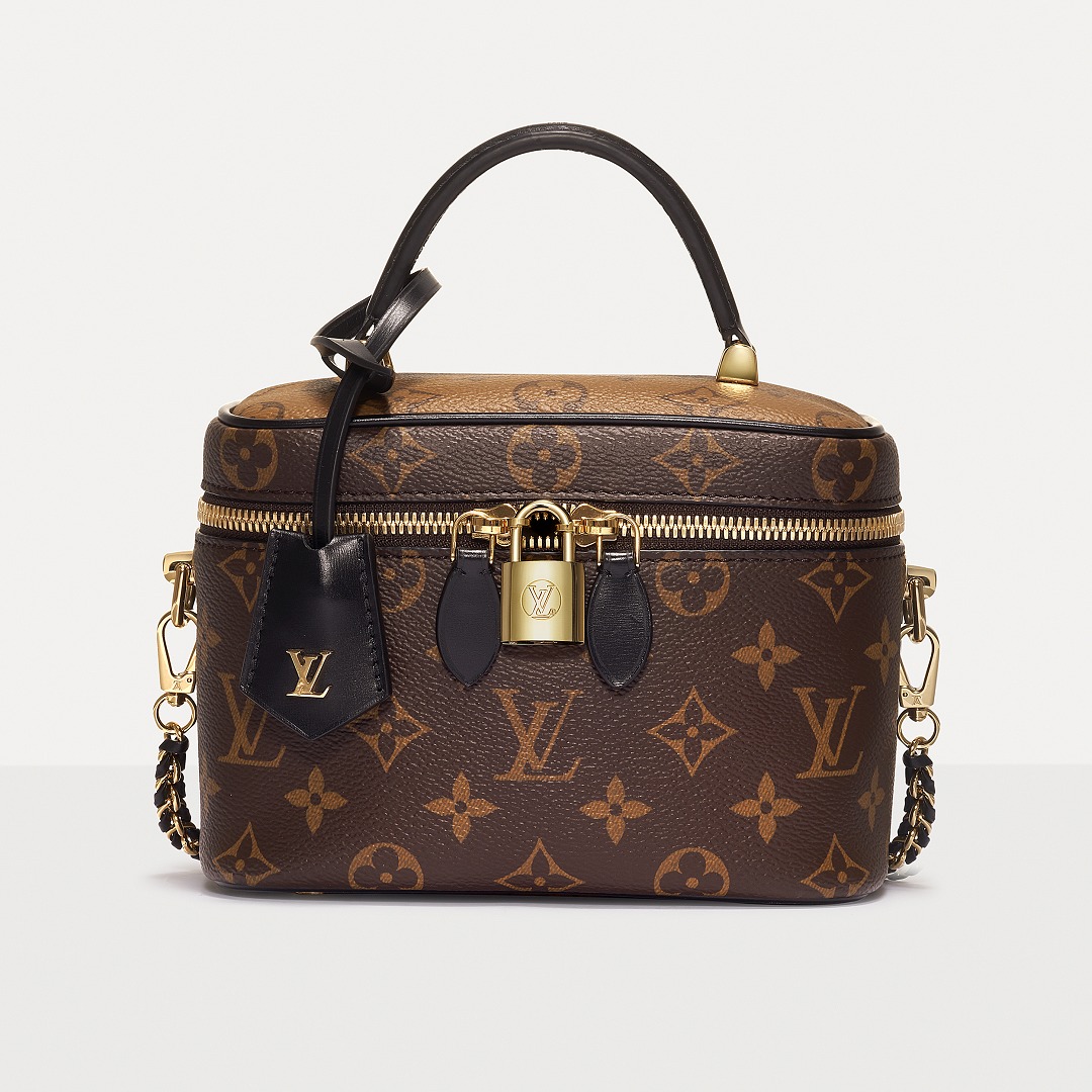 This small Vanity handbag is a Louis Vuitton 2020 spring and summer show model . It is inspired by the brand's classic makeup case . It uses a patchwork design of Monogram canvas and reverse Monogram canvas , and is paired with an exquisite leather woven chain . It can be carried by hand, on the shoulder, or cross-body. It is a versatile small bag that is both beautiful and practical.