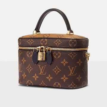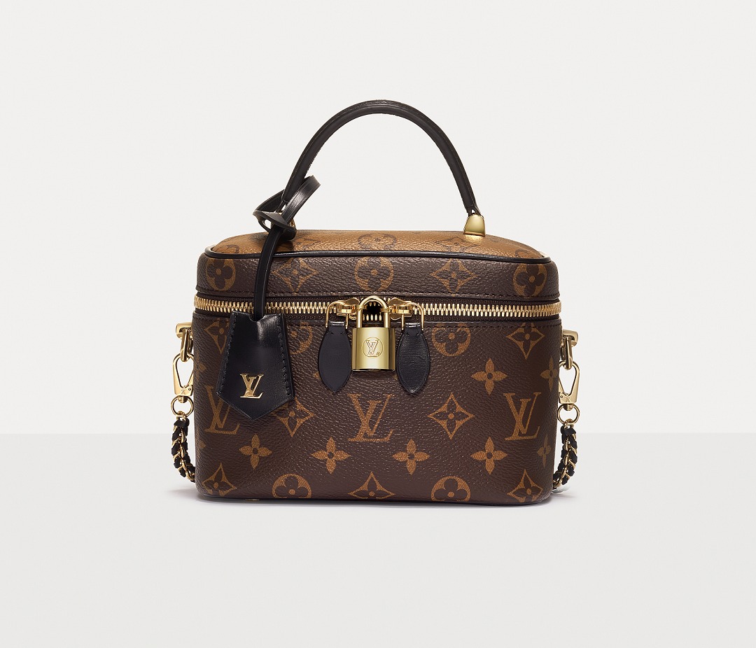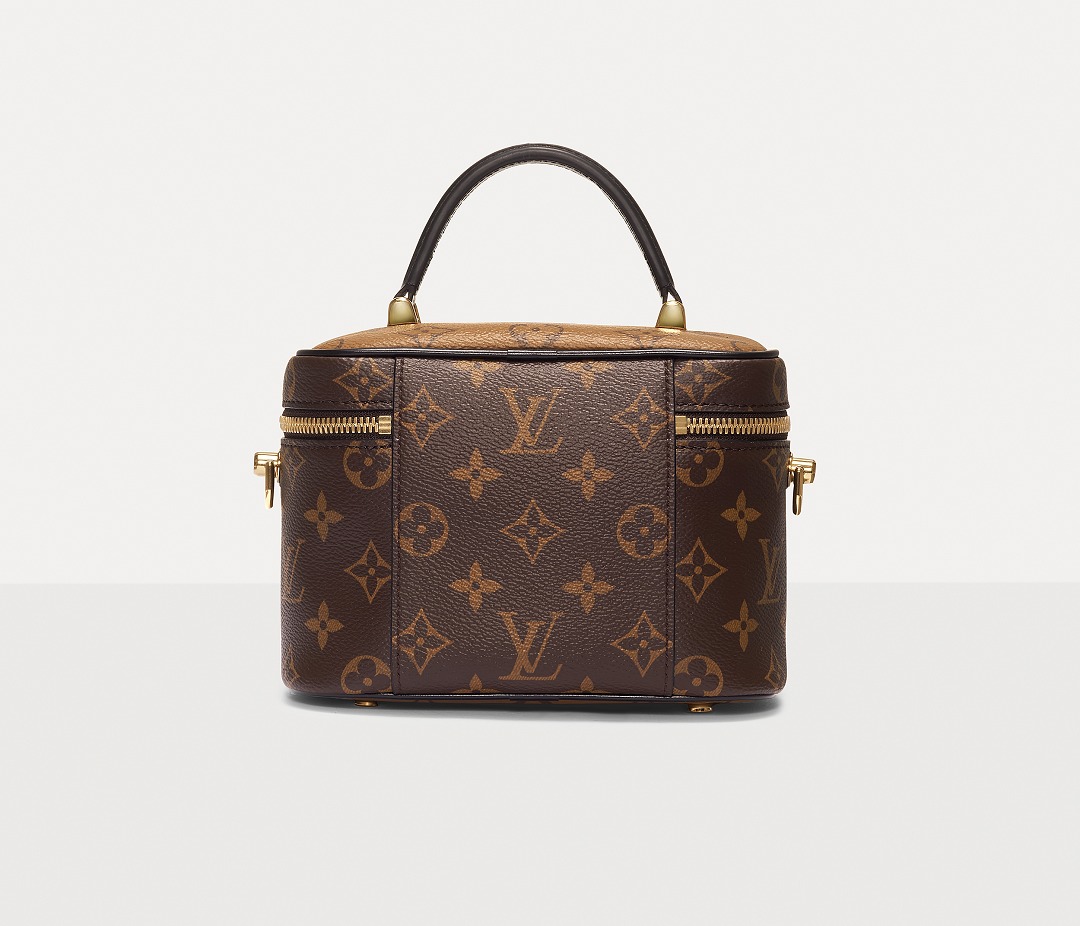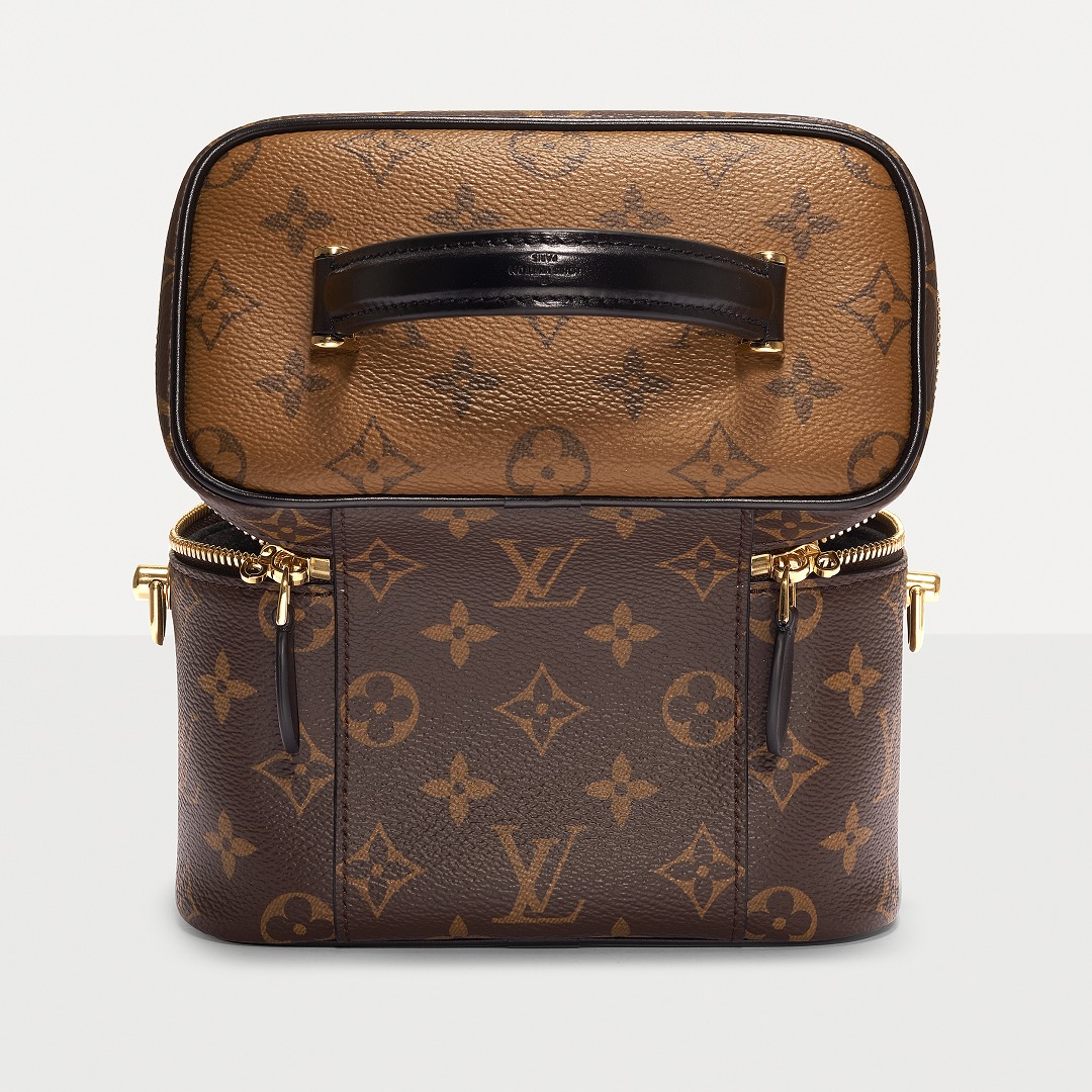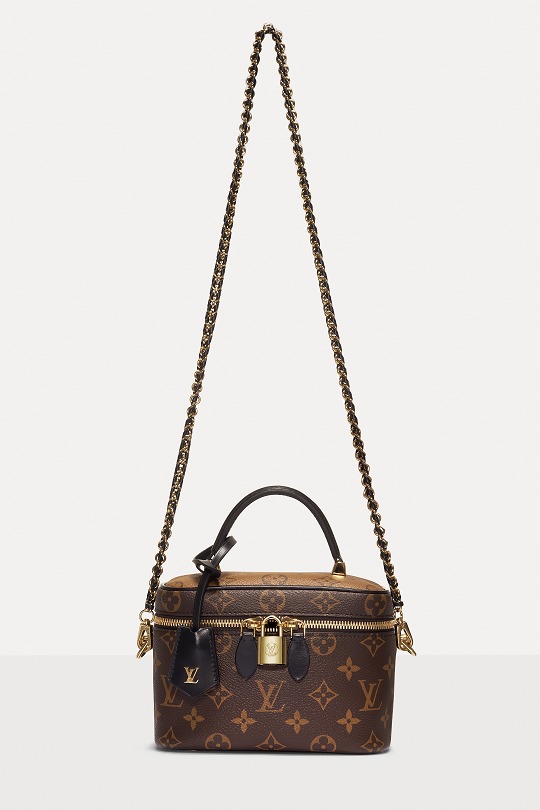 This small Vanity handbag is a Louis Vuitton 2020 spring and summer show model . It is inspired by the brand's classic makeup case . It uses a patchwork design of Monogram canvas and reverse Monogram canvas , and is paired with an exquisite leather woven chain . It can be carried by hand, on the shoulder, or cross-body. It is a versatile small bag that is both beautiful and practical.