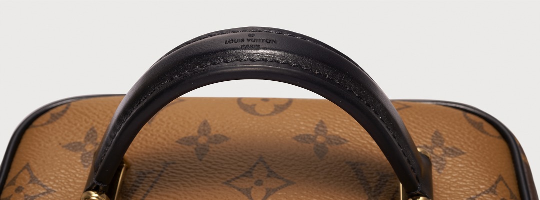 The color-blocking design is also one of the highlights of this bag. The body of the bag is made of tan Monogram canvas , and the top and bottom are spliced with Monogram Reverse canvas . The different shades of color enhance the playfulness of the handbag and complement the small shape of the bag.