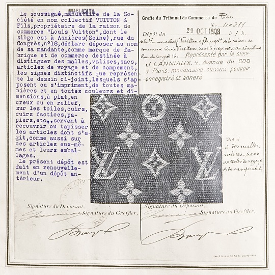 The brand's iconic LV Logo was created in 1896 by Georges Vuitton, the son of brand founder Louis Vuitton. It is composed of the initials of his father's name, "L" and "V", interwoven together.