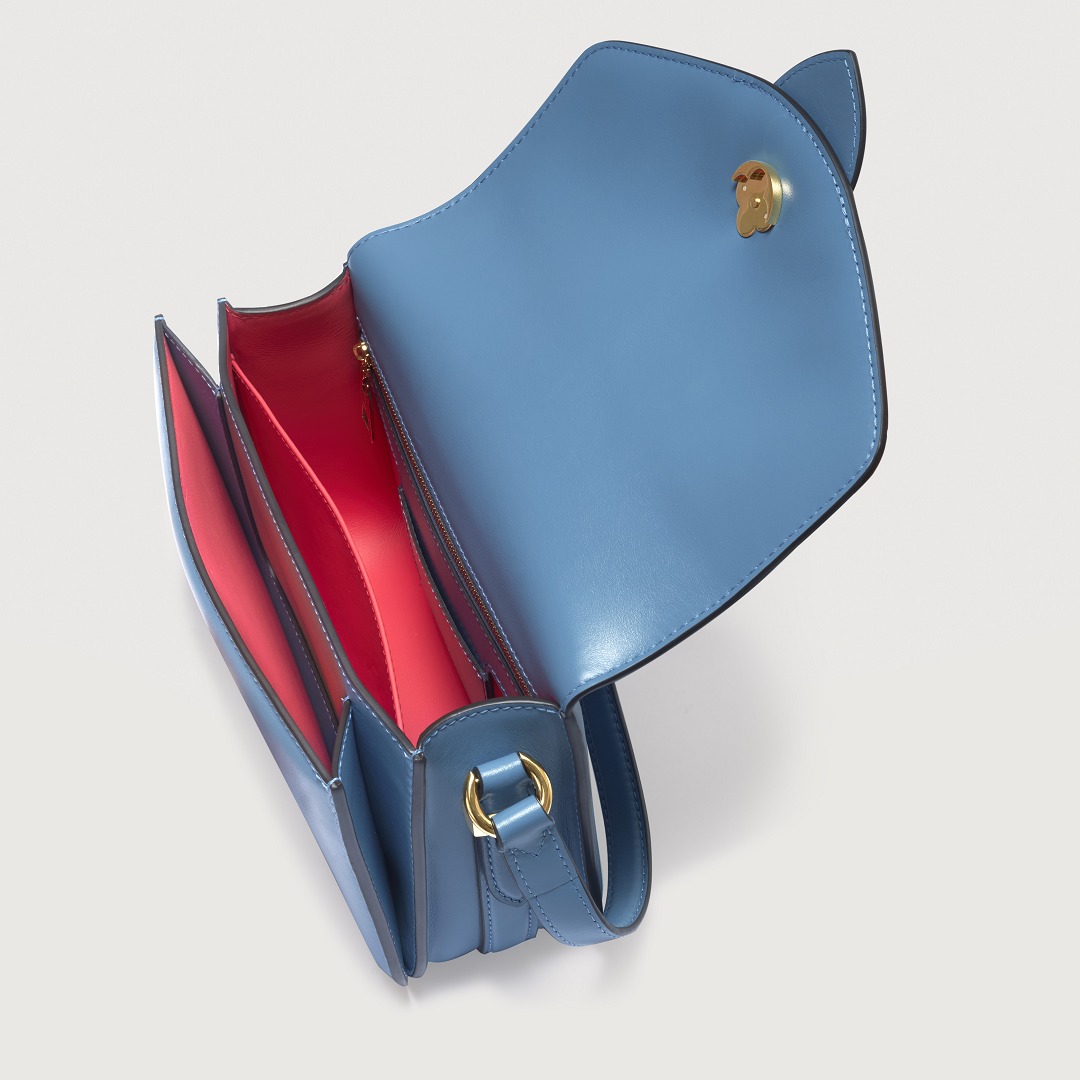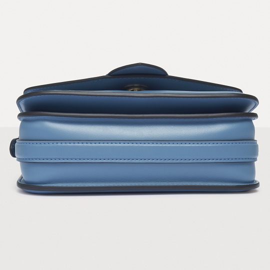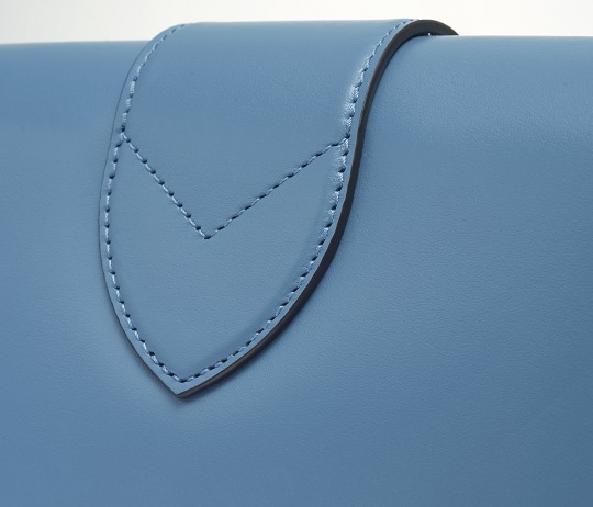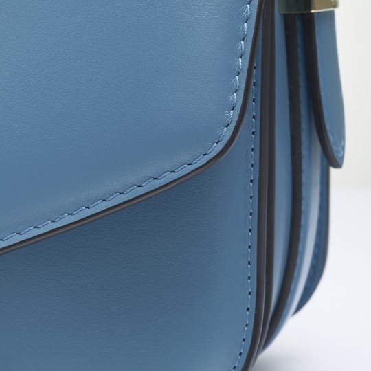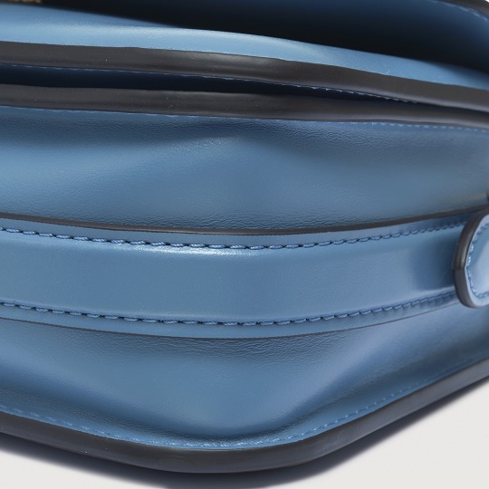 The bag has a crisp rounded rectangular outline, an envelope-style flap with a hint of retro, and a leather ribbon running through the center , like the cover of a classic book. The entire bag, including the lining, is made of glossy and finely polished cowhide . The saturation of the storm blue is not too high, exuding an elegant and fresh temperament.