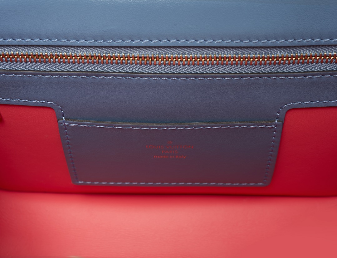 When we open the bag, we can see that the metal magnetic buckle is engraved into the shape of a Monogram four-petal flower , which is elegant and recognizable; the leather is hot-stamped with the brand logo.