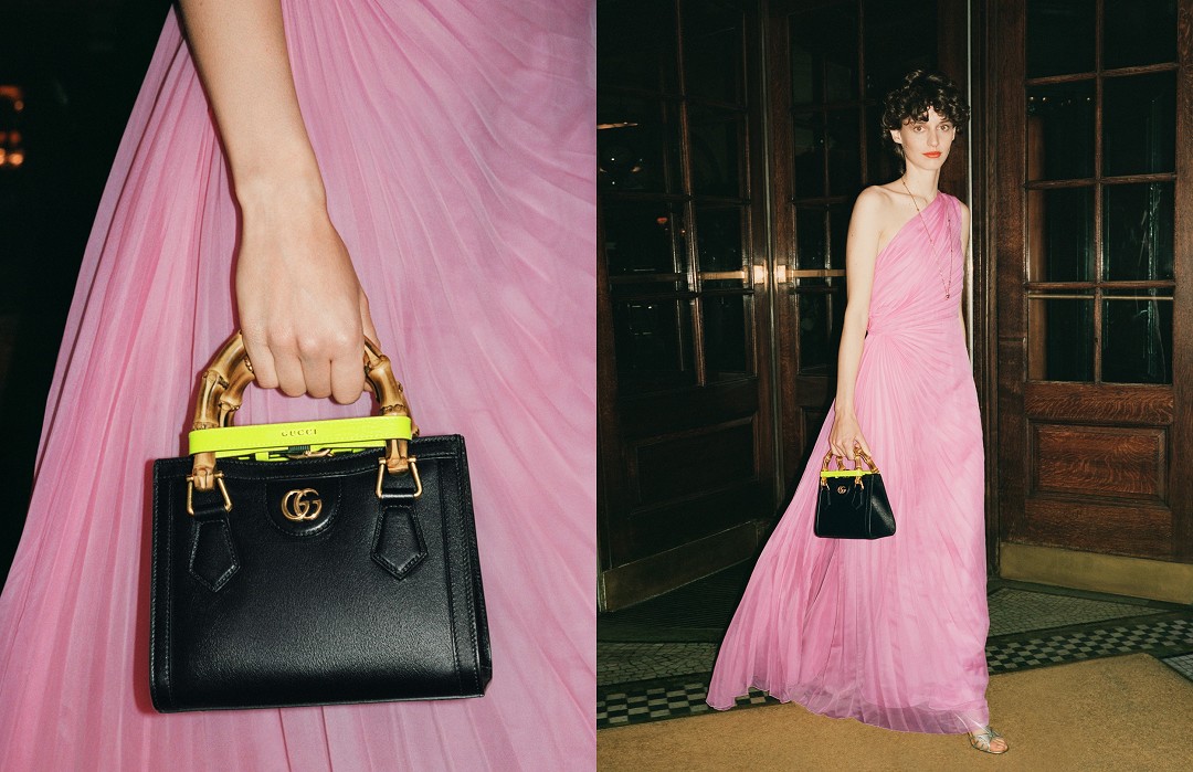 Even 30 years later, the old bamboo bag is still full of charm. The new Diana handbag is a contemporary upgrade based on the classic bamboo bag. The functional buckle used to fix the bamboo handle is given neon color , and the golden double G logo is added to the front of the bag as an embellishment. It is available in three sizes: mini, small and medium , which can not only fit the elegant taste, but also adapt to the new fashion scene.