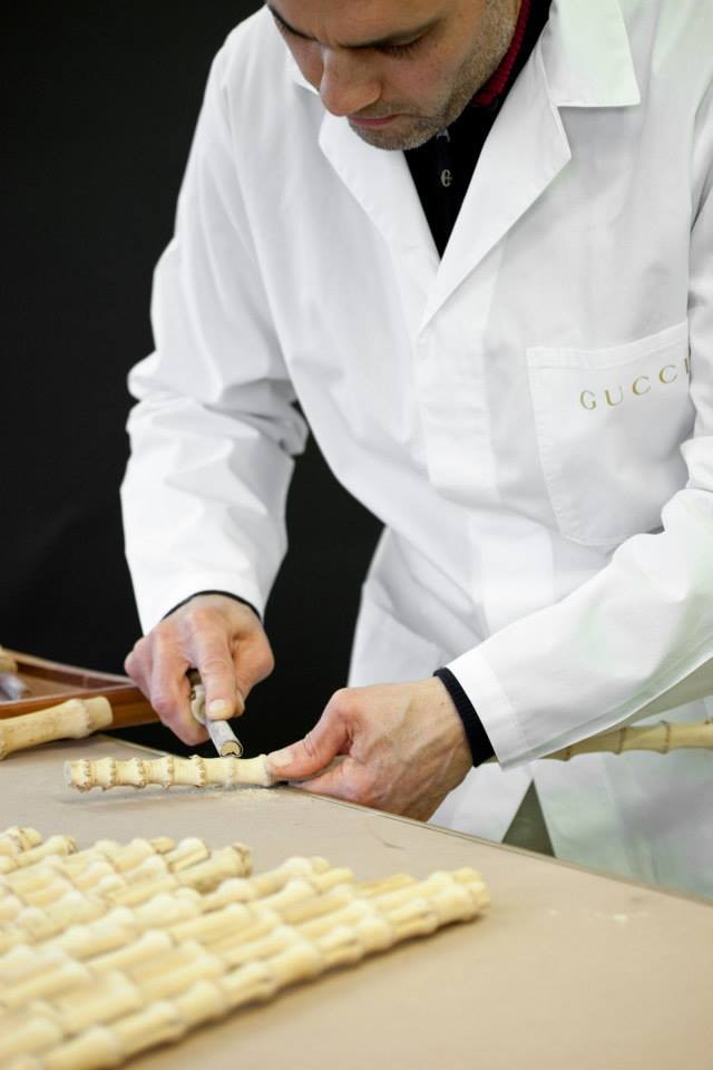 The bamboo handle is the most classical element of this bag. It was first created in 1947 and is a pioneering design of Gucci . At that time, it was not long after the end of World War II. European countries were still implementing resource rationing, and the raw materials for making bags were very limited.Gucci craftsmen imported bamboo rattan from Japan and developed a unique process of heating and bending bamboo joints, and applied for a patent for it. When making bamboo handles, the bamboo must first be bent and shaped by heating with fire, then colored with natural beeswax and varnish, and then baked again to give it a natural scorch mark.