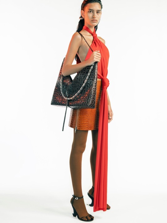 Givenchy's 2022 Spring/Summer collection launches the Moon Cut-Out handbag, which is derived from the Cut-Out croissant released in the brand's 2021 Spring/Summer collection . The "Cut-Out" is the first bag designed by creative director Matthew M. Williams after taking office .
