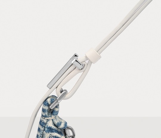 The Hobo bag is characterized by its short shoulder strap , which is perfect for wearing under the arm and can be carried by hand or by the arm. This bag is equipped with a detachable and adjustable short shoulder strap , which is made of clean pure white calfskin. The belt buckle is designed as a rectangular silver metal piece , which is polished to a shining metallic luster.