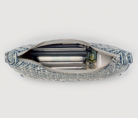 The lining is made of leather-effect synthetic leather, and a gold-stamped leather logo patch is sewn on. The denim is light and soft, with a certain stretch effect ; the zipper design is also very considerate, so you don't have to worry about spilling even if you put a lot of small items in it. We put small items such as mobile phones, lipsticks, card holders, keys, small notebooks, and portable perfume in the bag, which is light and practical for daily shopping.