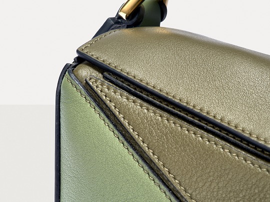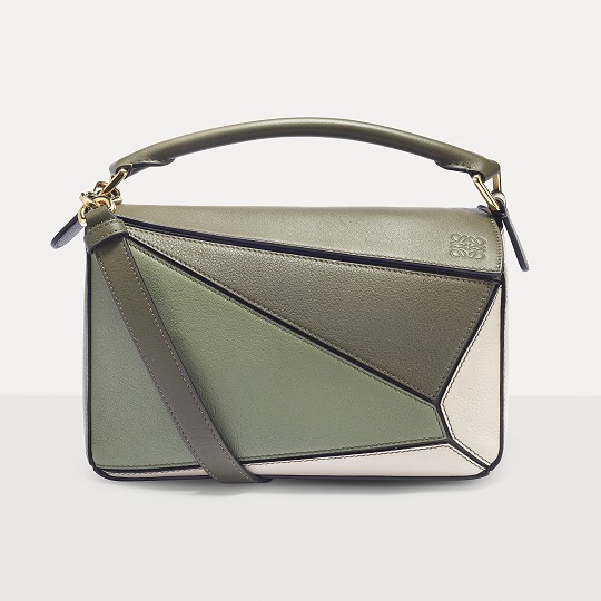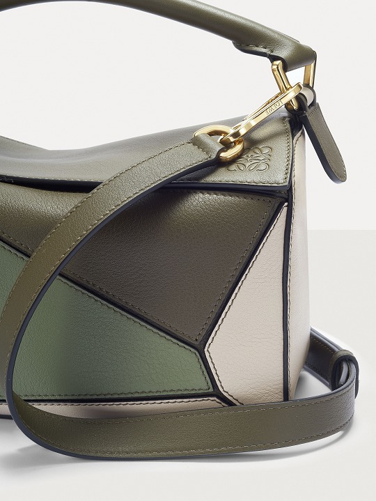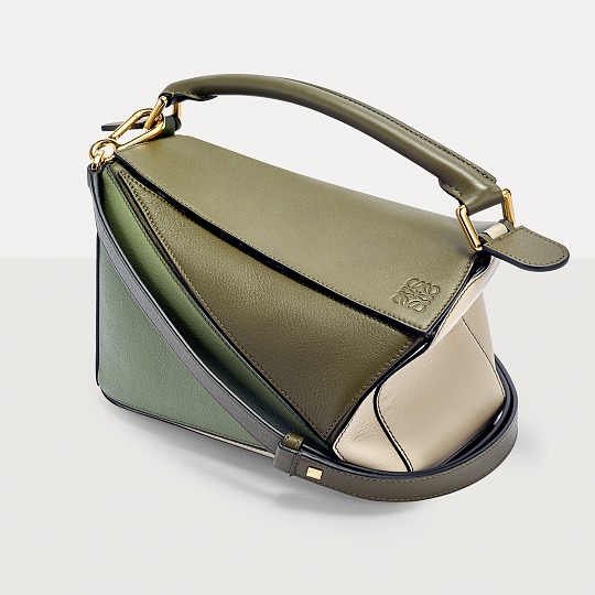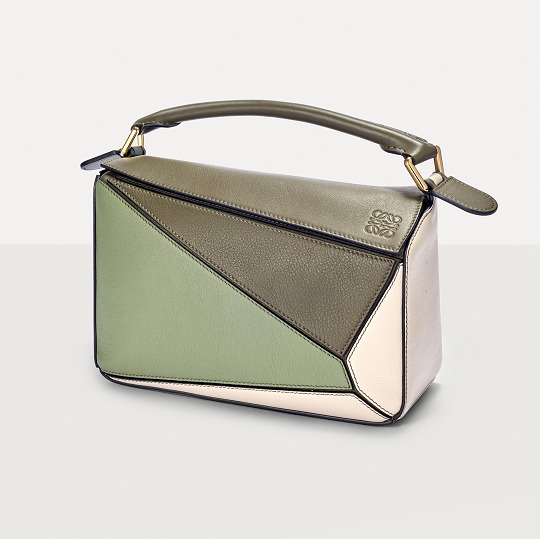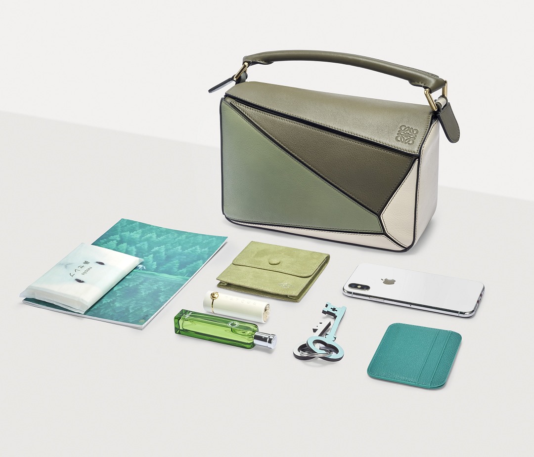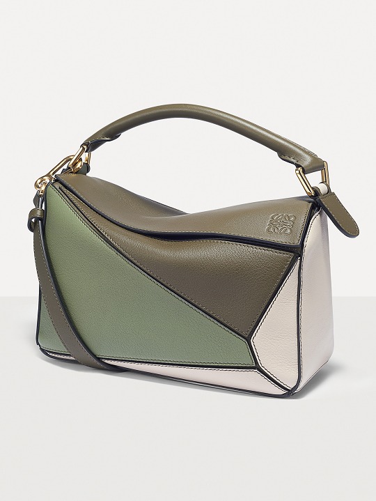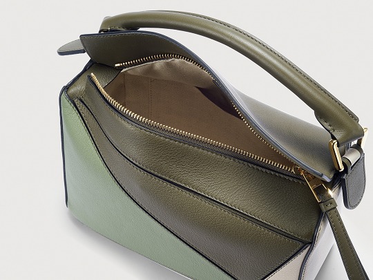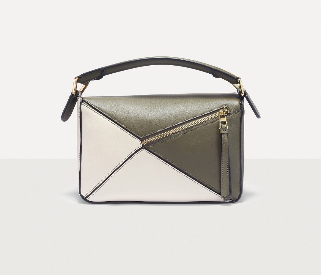 LOEWE's classic Puzzle handbag launches new color schemes in the fall and winter of 2022, using marble green and light oatmeal satin calfskin to interpret the bag body. The color contrast highlights the unique geometric lines of the bag , and the low-saturation neutral tones are restrained and durable.