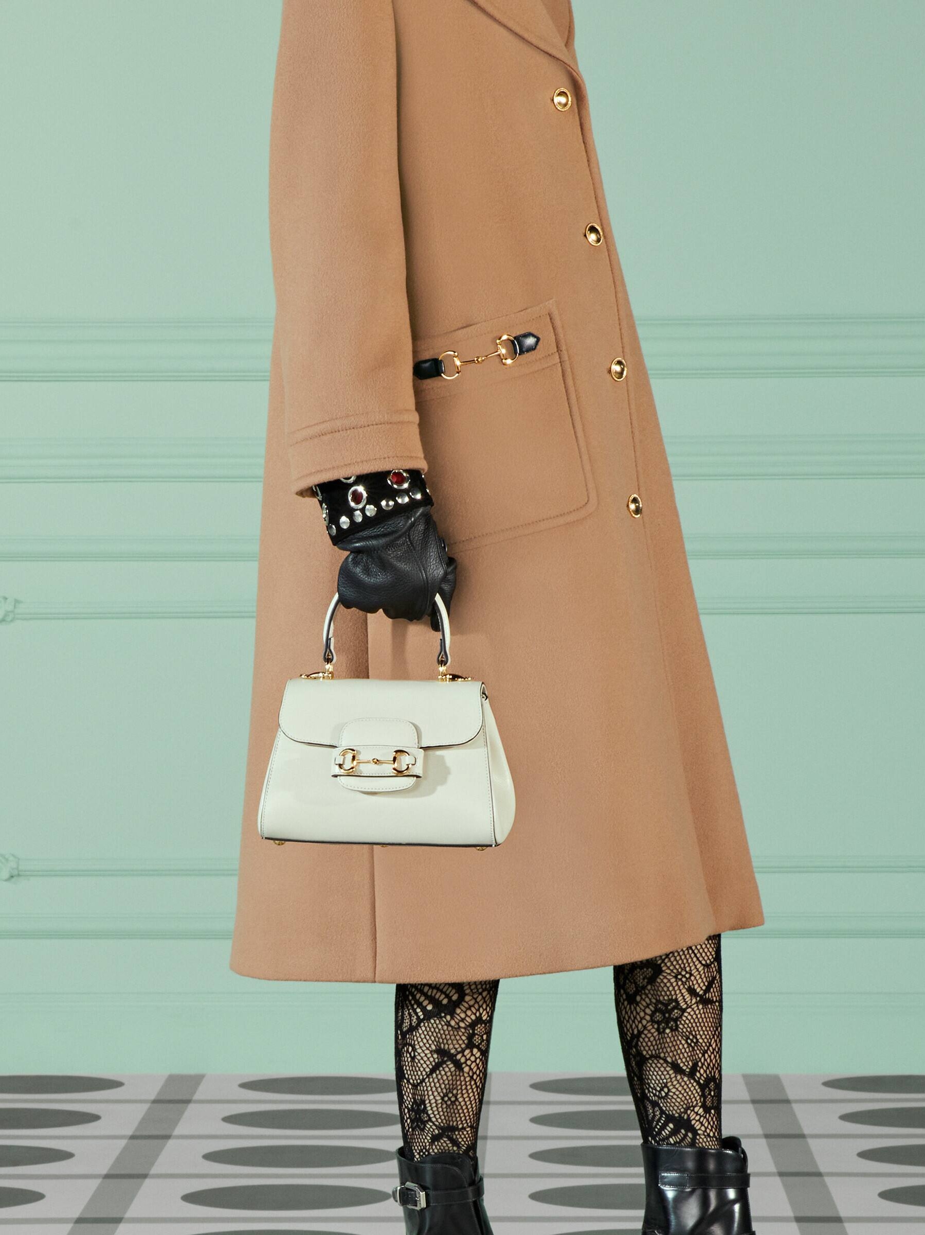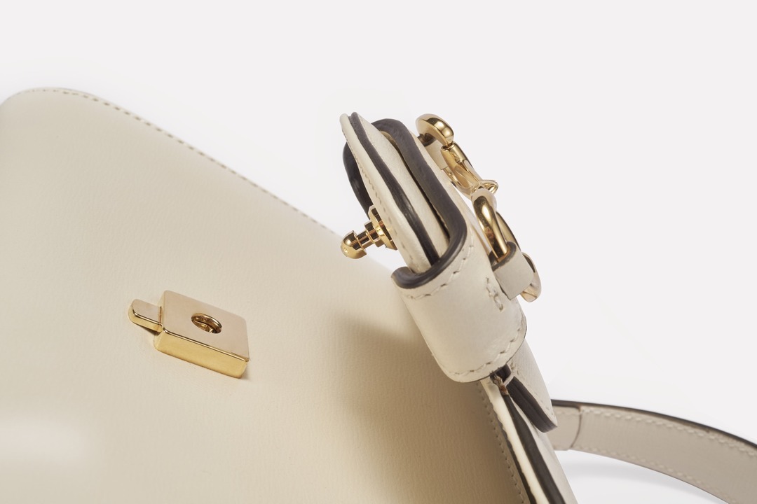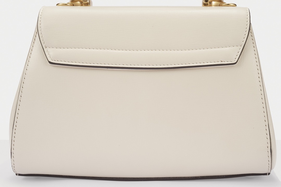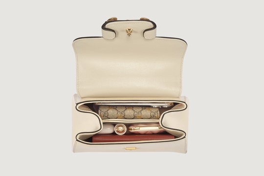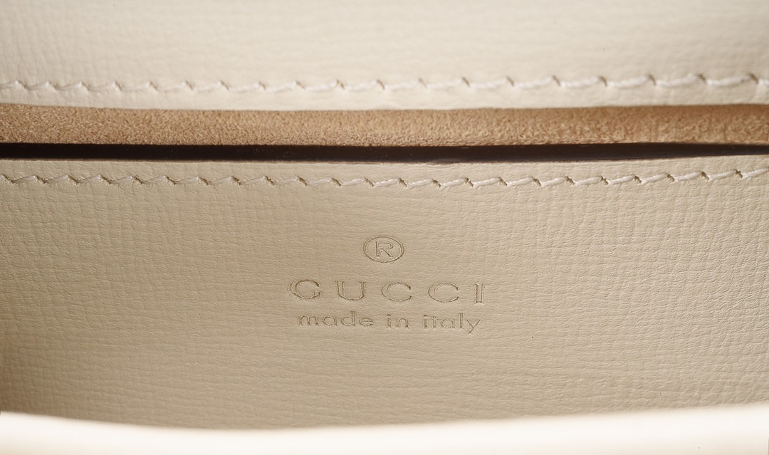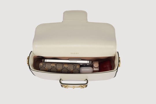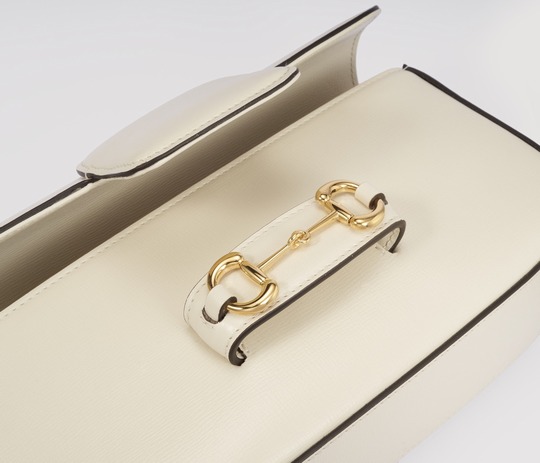 The handbag is made of ivory white leather and is paired with the iconic "horsebit" element. The highlight of the bag is that the opening and closing method is different from that of a handbag - the wearer needs to pull the flap out of the horsebit , which is still simple and convenient, but gives people a more ceremonial feeling.