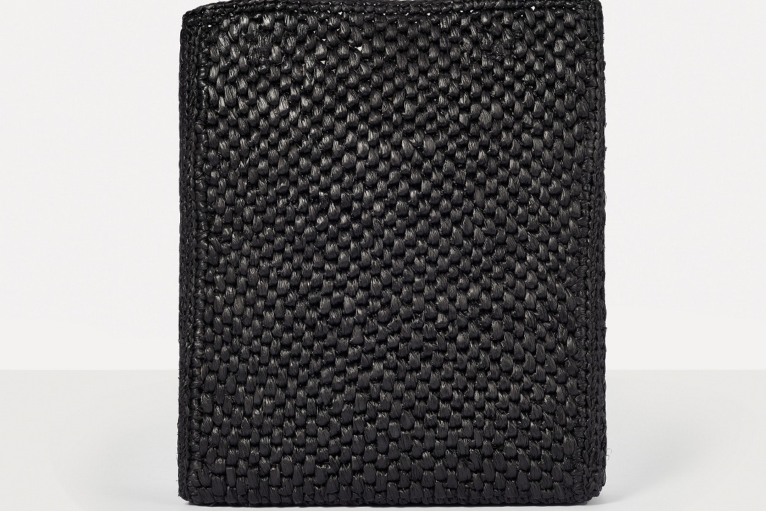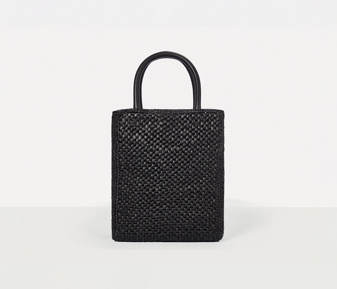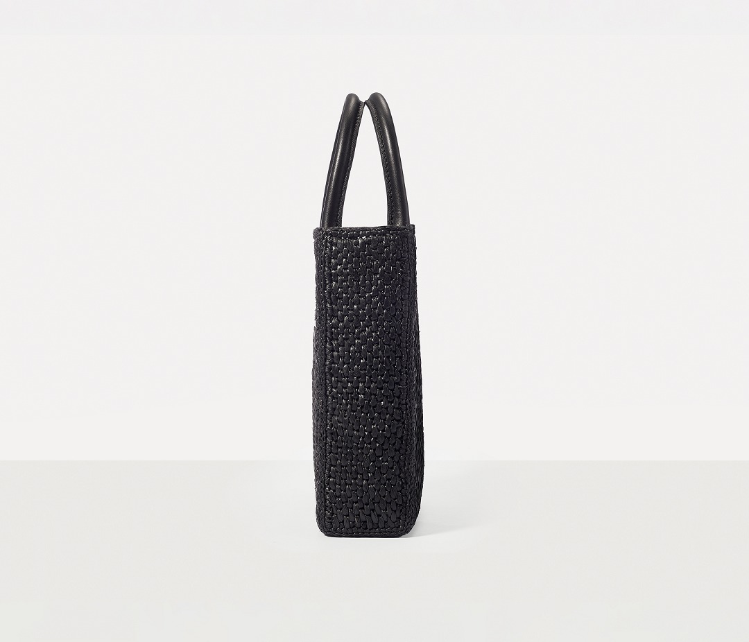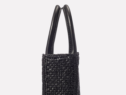 Each bag is hand-woven by artisans, and the dense weaving pattern allows the bag to maintain a flat and stiff silhouette. The arched double handles are made of black calfskin, and the tubular handles are comfortable and resilient.